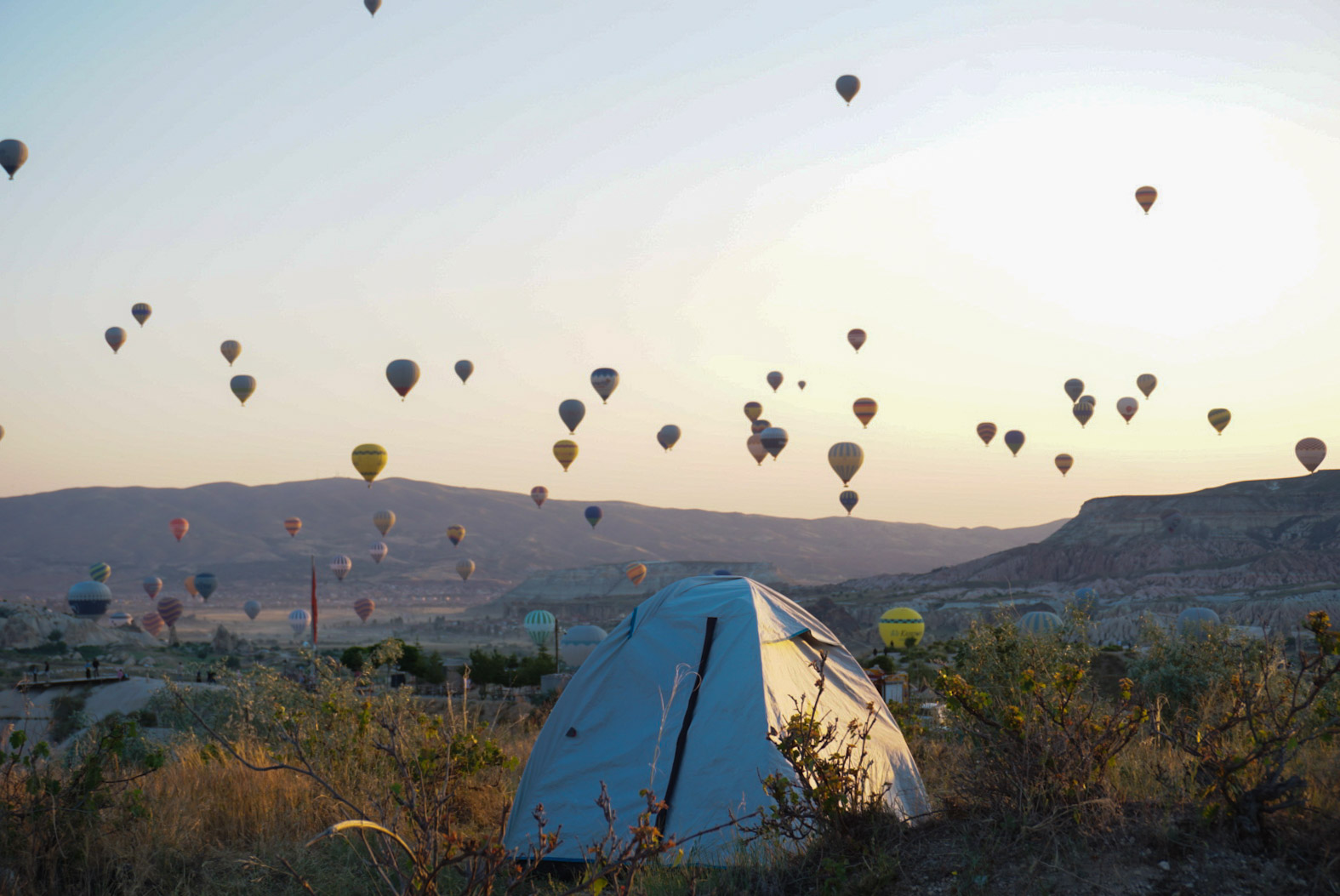 Le soir n’allait pas rattraper les péripéties de la journée. Nous retournons à Göreme pour pallier les soucis survenus, nous décidons aussi de nous remonter le moral avec des chips et de partir camper dans la nature. On se balade vers un village troglodyte qui semble abandonné. Tout est beau, verdoyant, des petits potagers par-ci par-là et l’architecture particulière de la région donne un charme absolu au lieu. On s’installe pour dîner après avoir mis la tente (détail très important). En pleine conversation hyper intéressante avec des chips au miel à la main, j’entends des aboiements. Si vous me connaissez (car je crois ne pas encore l’avoir dit dans ce blog) , j’ai très très peur des chiens. Si un chien aboie après moi, je fais demi-tour, je n’essaye pas de passer, je suis toujours sur mes gardes lorsque j’en entends et j’avoue que je suis relativement tétanisé. Hors des chiens, nous en croisons beaucoup et surtout des chiens errants.