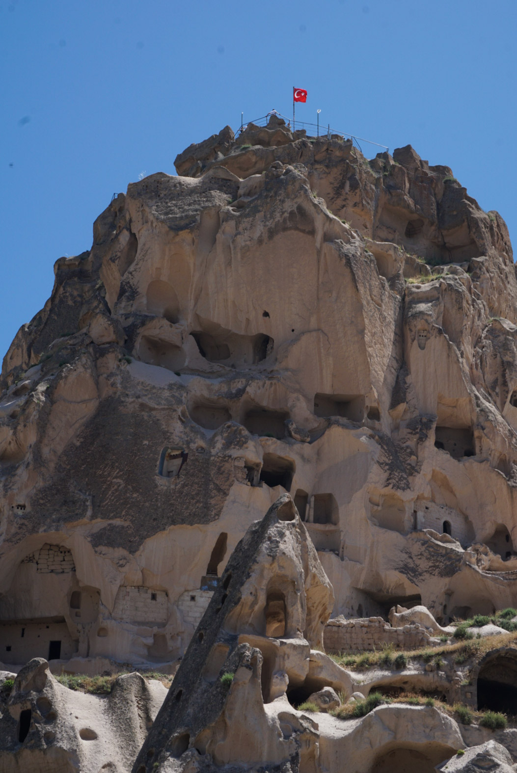 Aujourd’hui repos, piscine et restaurant pour combattre la canicule et la fatigue. Plus tard dans la soirée, nous partons à Uchişar pour visiter le château que l’on voyait au loin. Le stop fonctionne bien, c’est notre 3e trajet ici. On arrive au pied du château, pas de bol, c’est payant et j’ai la flemme. Ax s’introduit en escaladant pour ne pas payer son ticket et part en visite seul. Je regarde les passants en attendant et c’est un moment agréable. On dormira deux jours dans cette ville sous une cavité de maison troglodyte ce qui est plutôt classe.
