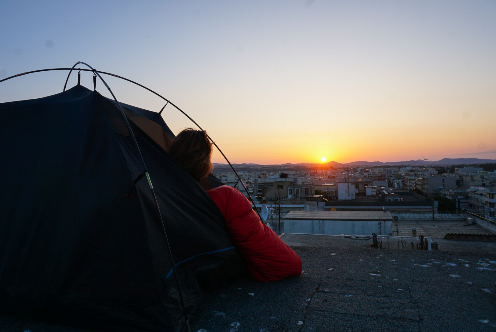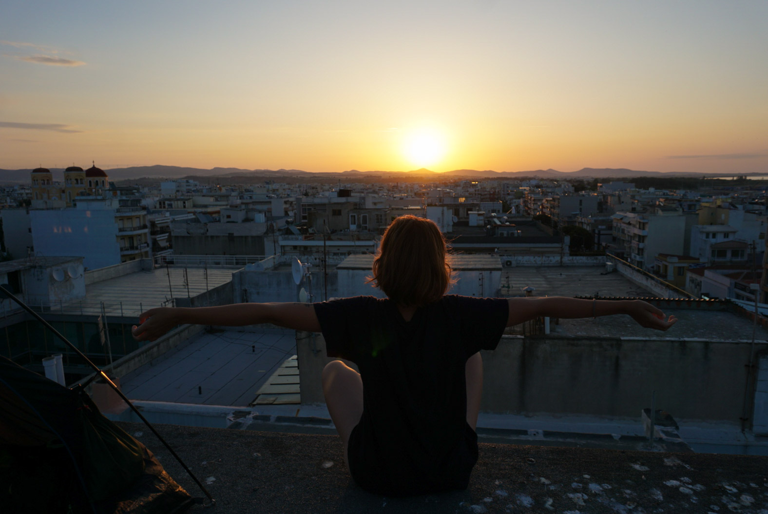Nous voici à Alexandroupoli, nous trouvons un toit à 5 min du port pour demain matin 7 h. J’escalade mon premier toit pour parvenir à cette vue magnifique sur la ville. Je l’écris en une phrase, mais cela m’a pris une vingtaine de minutes et 3 tentatives pour y arriver. J’étais fière de moi !