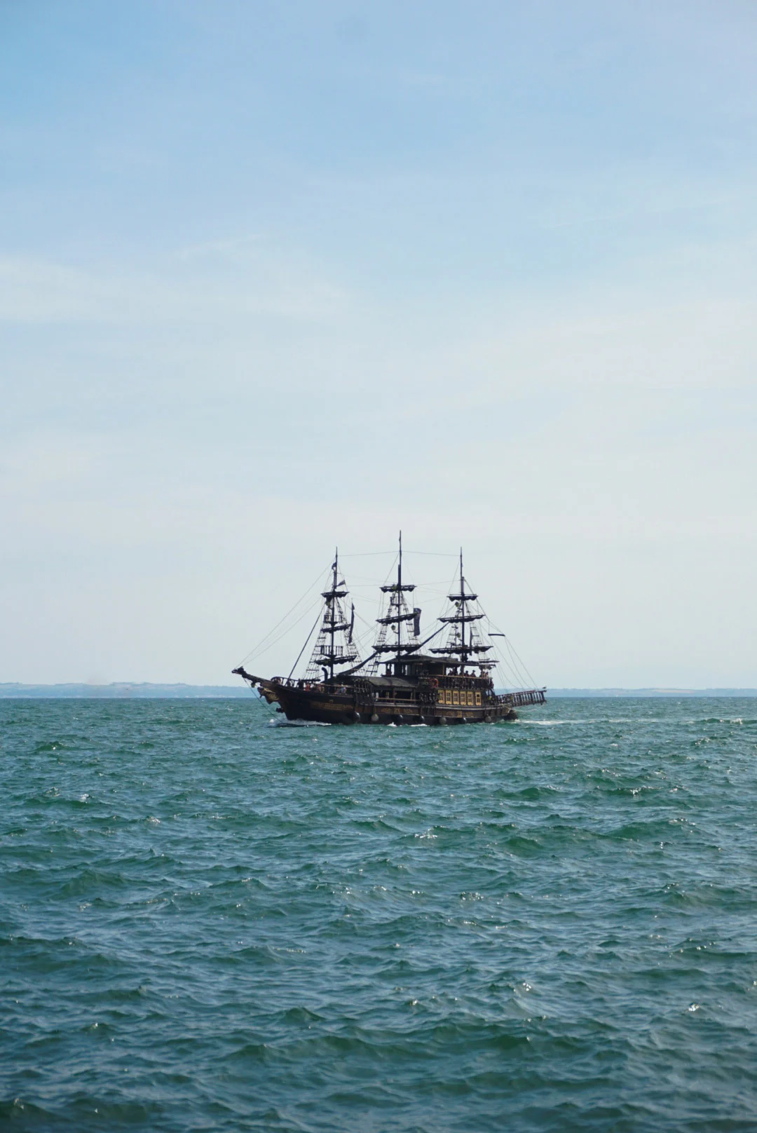 Je rejoins Alexandre au bord du port pour contempler les vagues. Alors qu’à mon habitude (depuis que j’ai l’autorisation de le laisser paraître sur le blog), je prends mille photos de lui, un bateau ancien tel un bateau de pirate apparaît et je m’empresse de le photographier malgré la distance qui me sépare de lui.
