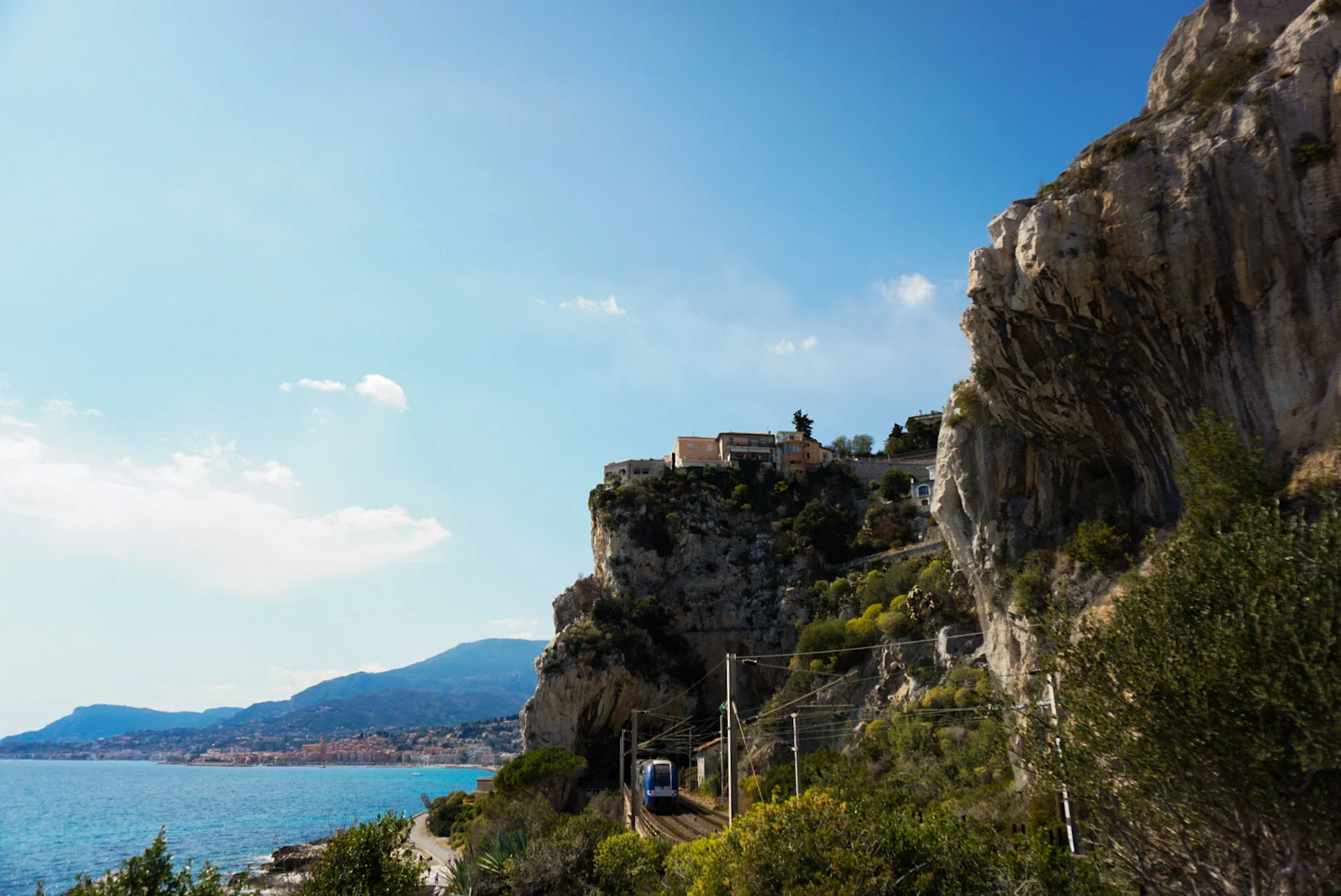 On est arrivé à la frontière dans l’après-midi, sûrement vers 15h . On est passé devant Menton et c’était vraiment joli. Je regardais depuis la voiture, les teintes des murs des maisons de la vieille ville.