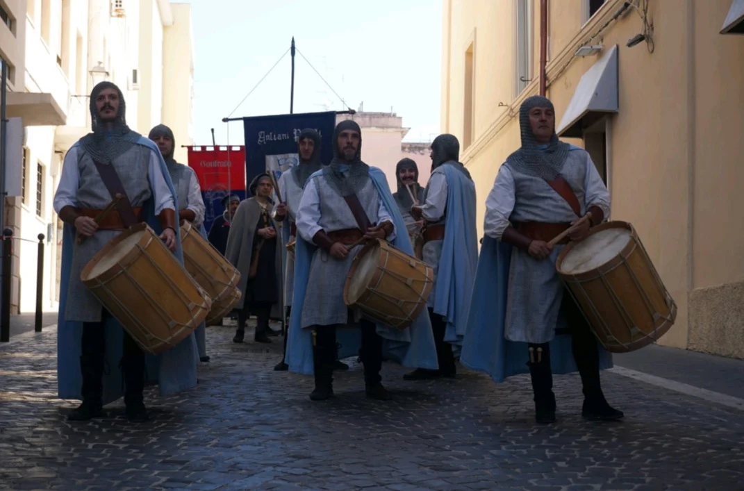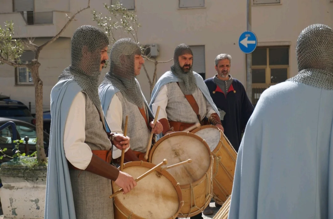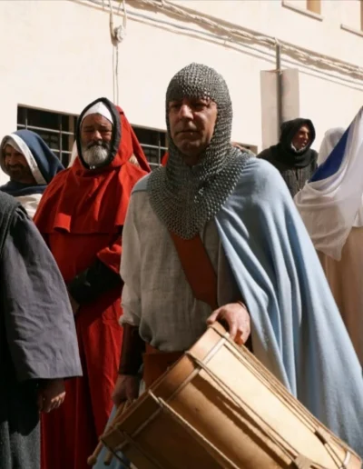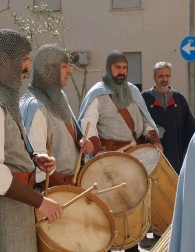 Nous tombons nez à nez avec des hommes en costume bleu et des tambours avant de se rendre compte qu’il s’agit d’une fête médiévale qui anime toute la ville.