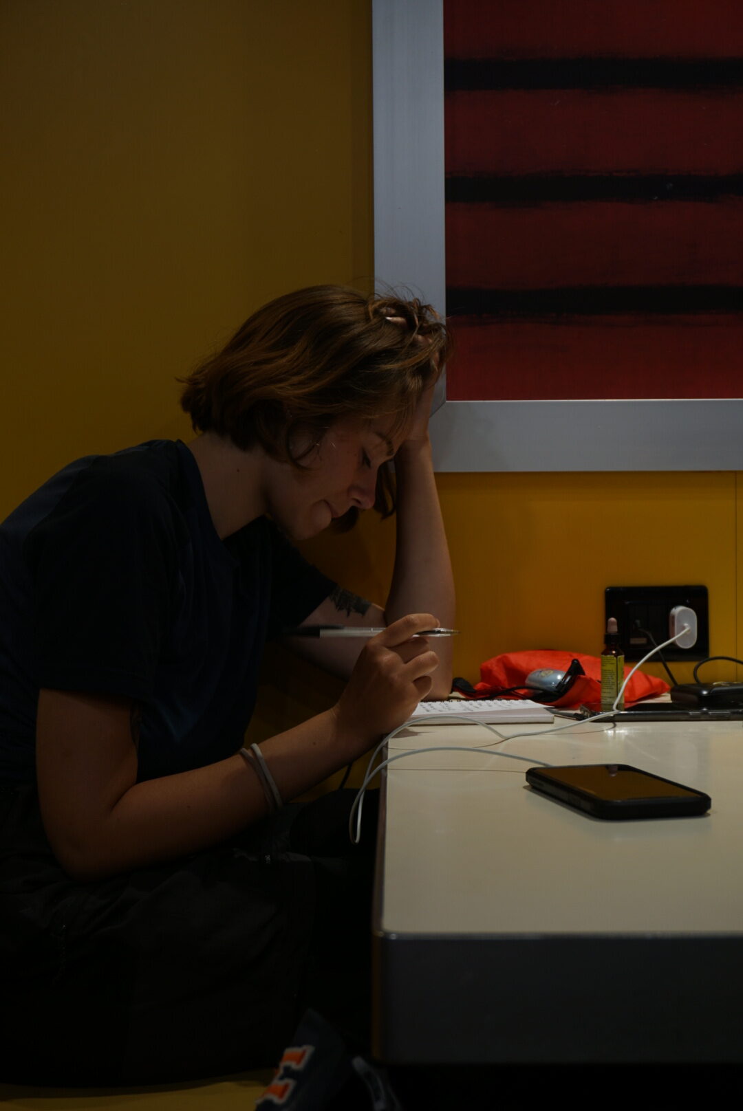 Concentrée la petite. On se demande bien ce qu’elle faisait