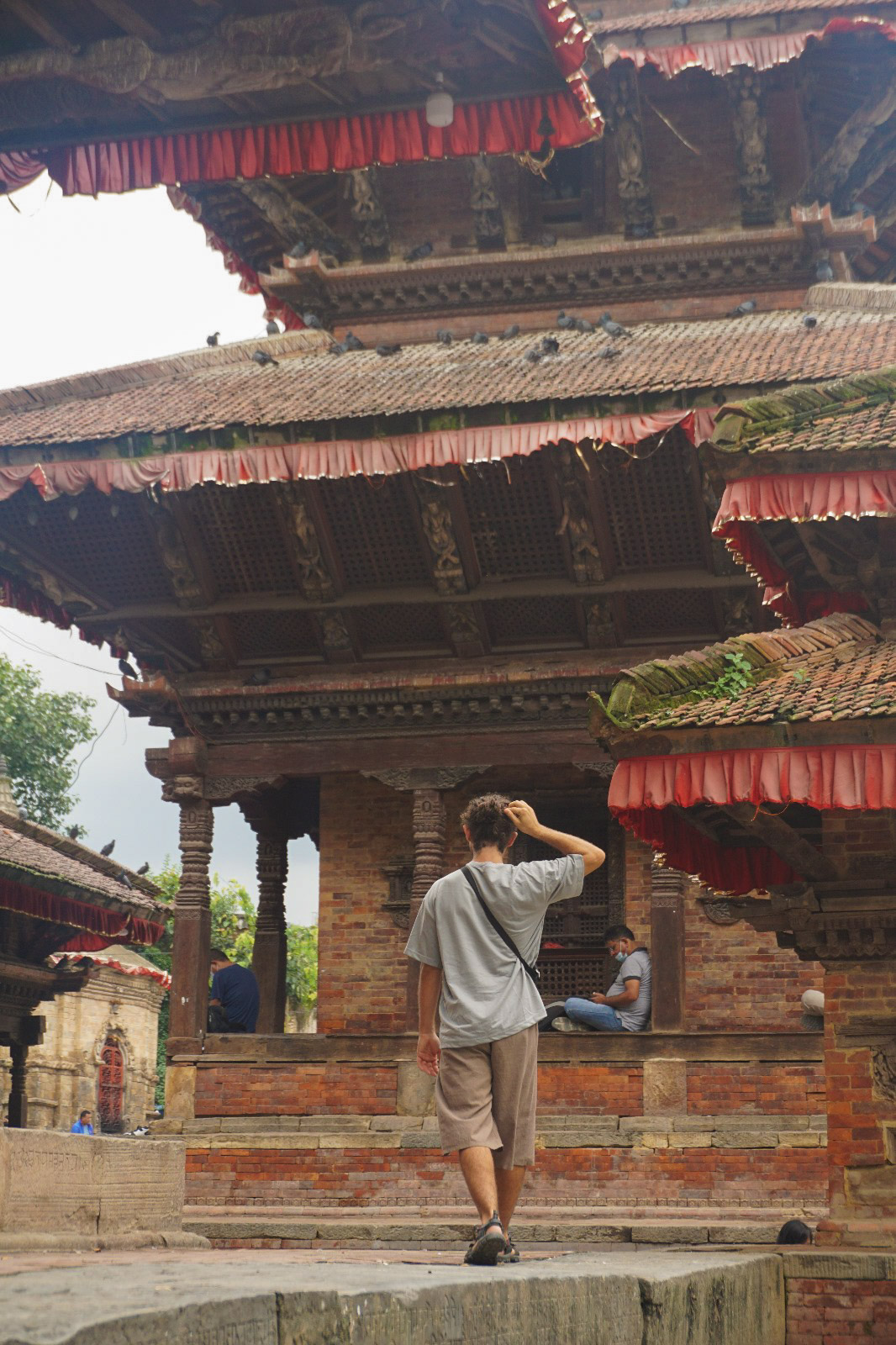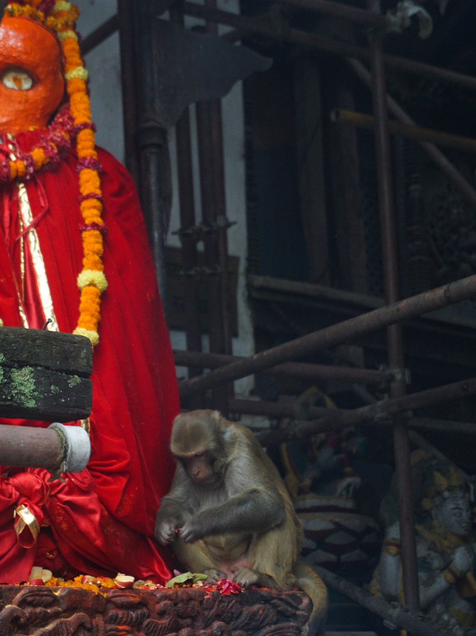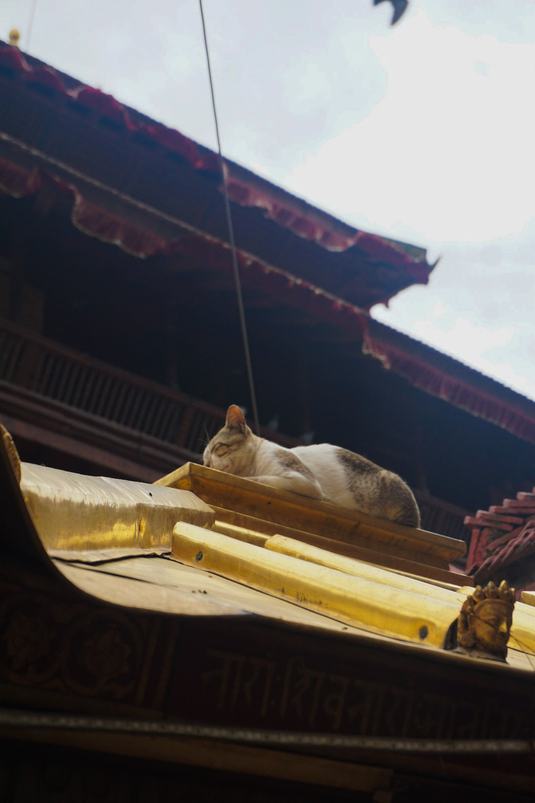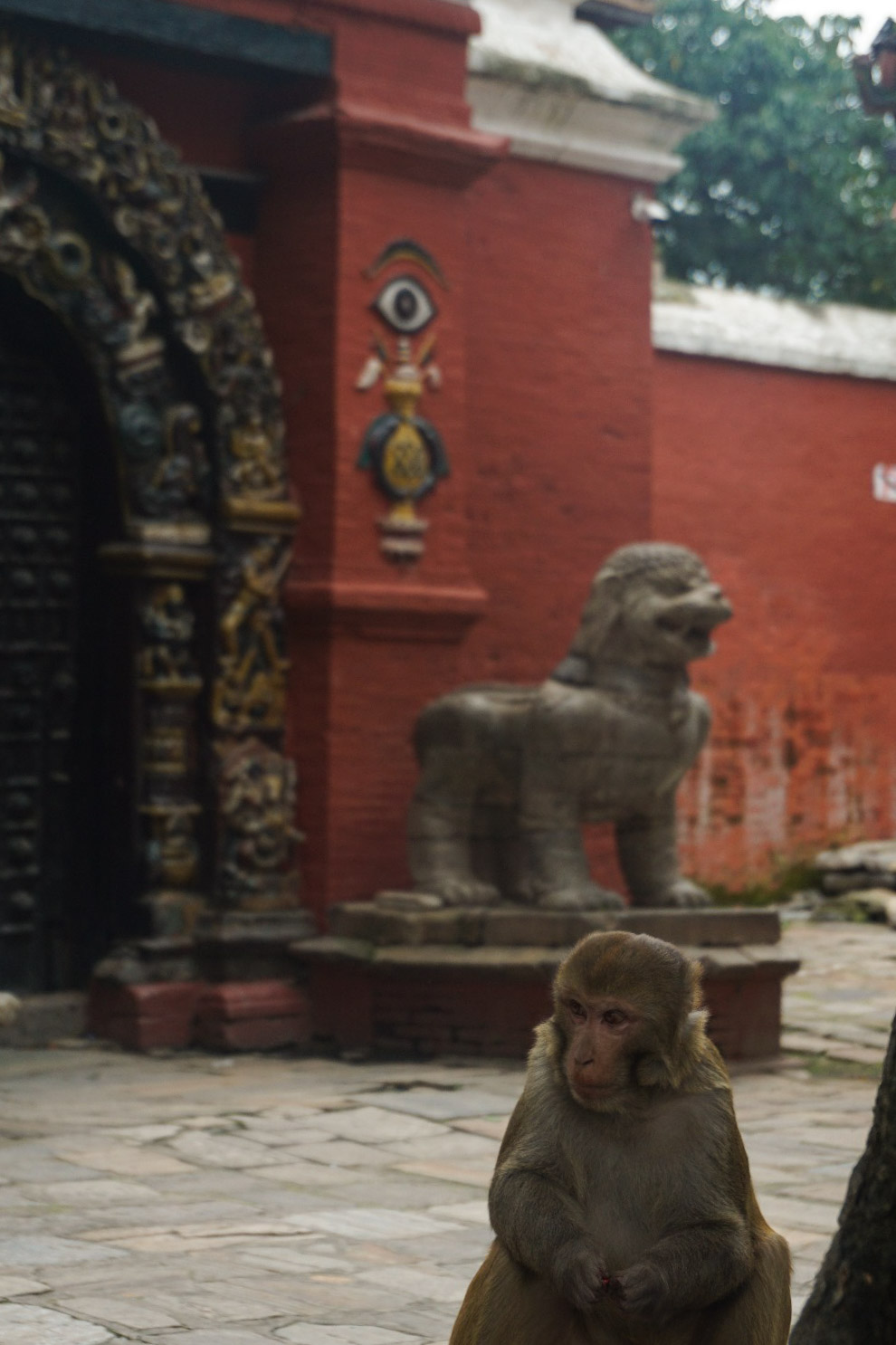 Nous avons aussi vu des temples, que ce soit à Durbar Square (📌), en pleine ville ou le dernier jour avant de prendre le bus de nouveau pour l’Inde. Ax a couru en haut avant de prendre le bus, nous avions une heure devant nous. Moi, je suis restée en bas, fascinée par les singes. Il y en avait tellement. Les bébés accrochés au ventre de leurs mamans étaient trop adorables pour que je détourne les yeux. L’un d’eux s’est accroché brièvement à ma jambe avant que je ne parte pour le bus. Un gros moment d’émotion ponctué d’appréhension de cet animal que je ne connais finalement pas.