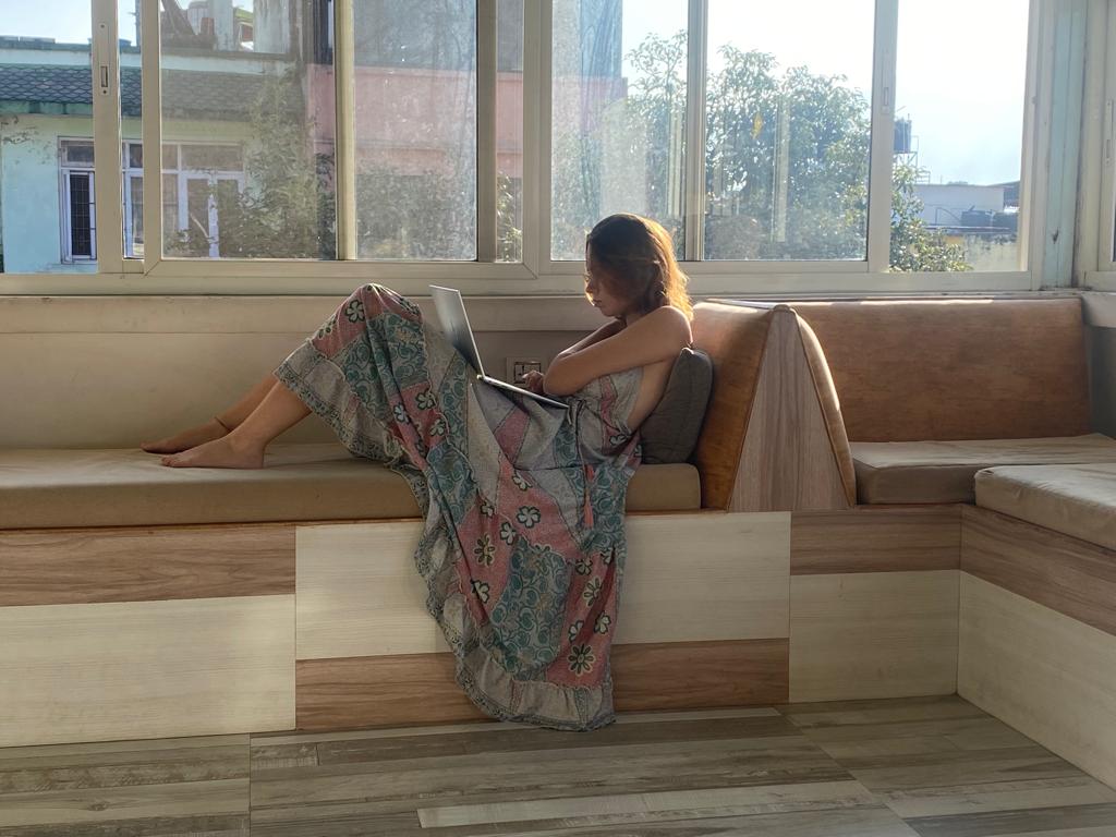 Lorsque nous sommes arrivés, nous étions sous la pluie, je dansais, trop heureuse de changer de pays et pleine d’espoir pour la suite du voyage. Voyage que nous avons finalement mis sur pause, mais ça, ce fut après le long moment où nous étions bloqués à l’aéroport. Alors commençons et maintenant, je peux vraiment dire Namaste, car c’est surtout ici et dans le Nord de l’Inde que l’on se salue avec ce terme.