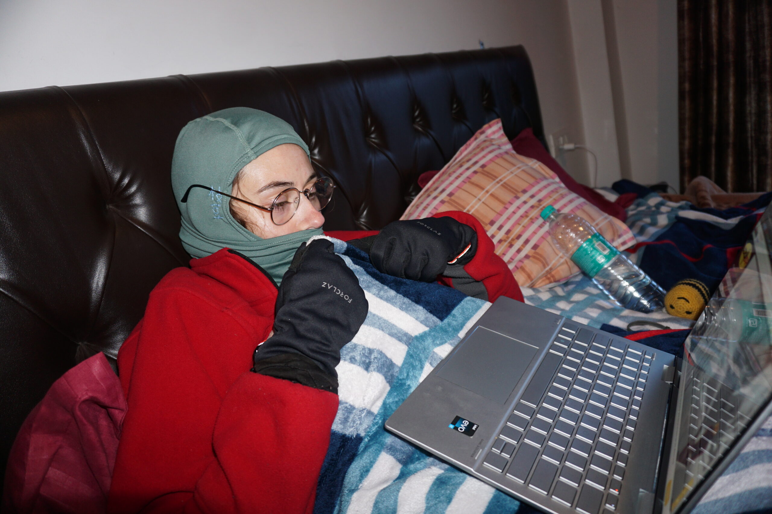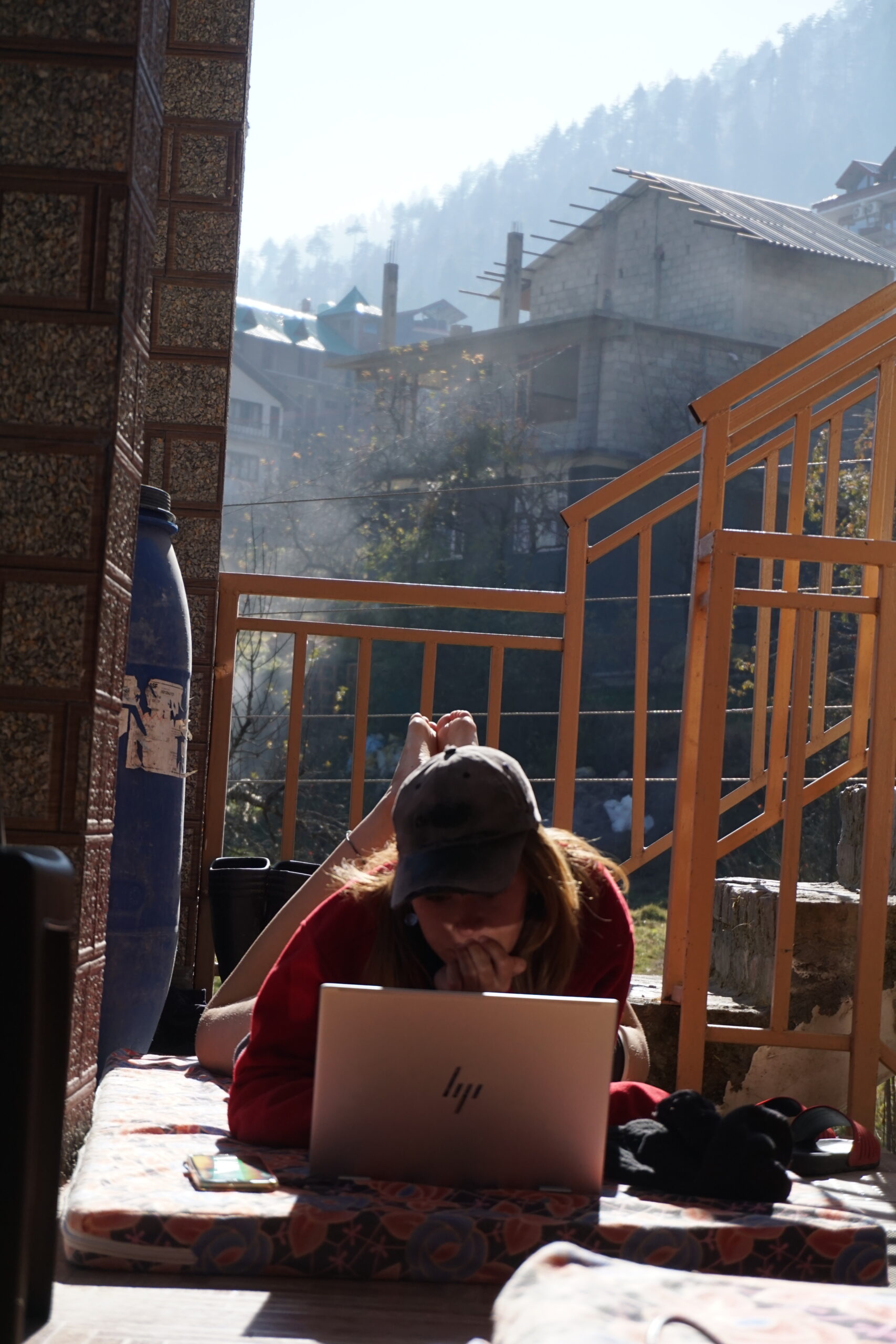 Il est grand, il est moelleux et on part enfin à la montagne. On discute beaucoup avec Ax dans le bus, c’est super intéressant. On s’endort, la route passe, il boit du thé à un comptoir de bord de route à 4h du matin. Je passe les deux heures qui suivent à avoir envie d’aller aux toilettes. Le chauffeur me dépose et je ne me rends pas compte que nous sommes à notre destination. Je suis sur une route surélevée et les toilettes sont sur le parking en contrebas. Je commence à courir, au point que je ne vois même pas que je suis au cœur des montagnes. J’escalade en descente, le monsieur ne me fait même pas payer, soit, car à 6 h, c’est gratuit soit, car il a vu ma tête et il a préféré me laisser faire. Je ressors, je sens le froid que j’avais complètement ignoré la première fois, je prends connaissance des montagnes autour de moi et surtout, je remonte pour attraper le bus qui n’est plus là. Je commence à m’arrêter, je fais demi-tour, je cherche Alexandre sur le parking en me disant qu’ils font peut-être une pause aussi. Je ne le trouve pas, je commence à l’appeler et j’avoue, j’ai un petit stress qui monte. Finalement, je le vois dans une voiture qui m’appelle depuis la fenêtre. Je ne comprends rien. Je monte et il m’explique qu’en fait, on est à Manali et que le chauffeur est le jeune homme envoyé par Sarkar (le monsieur qui nous loue l’Airbnb) pour nous déposer à la maison.