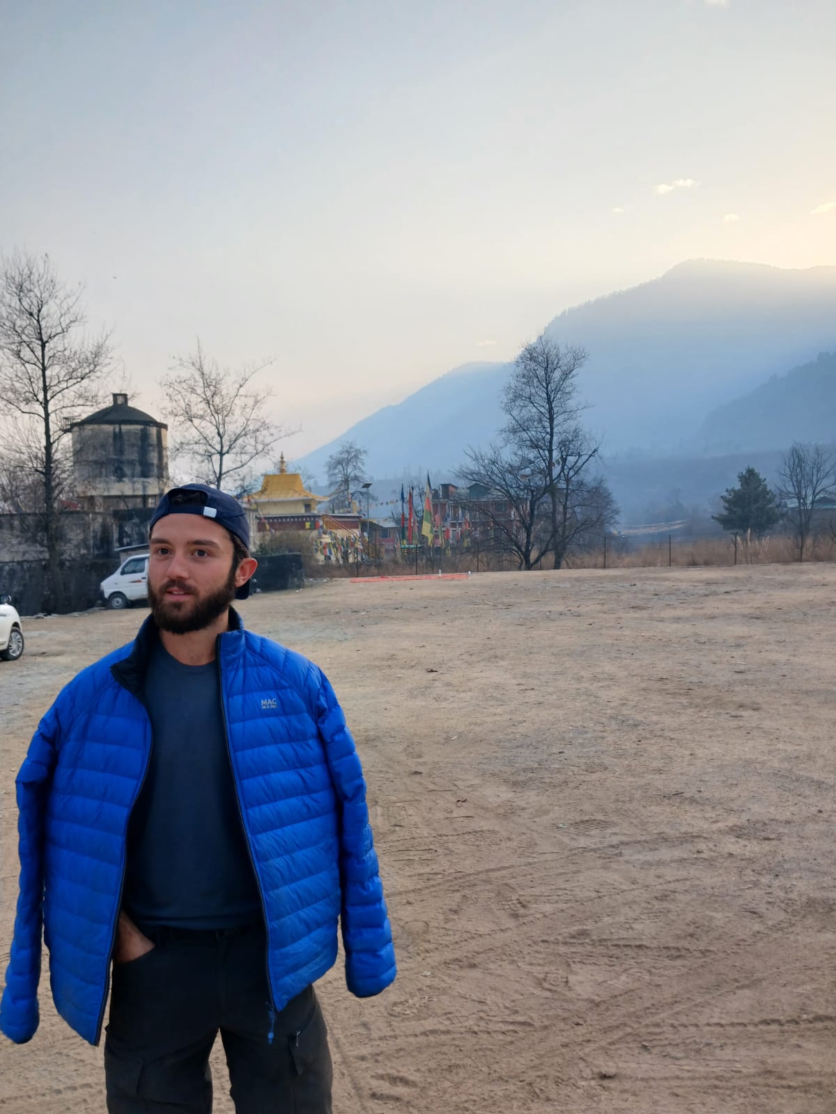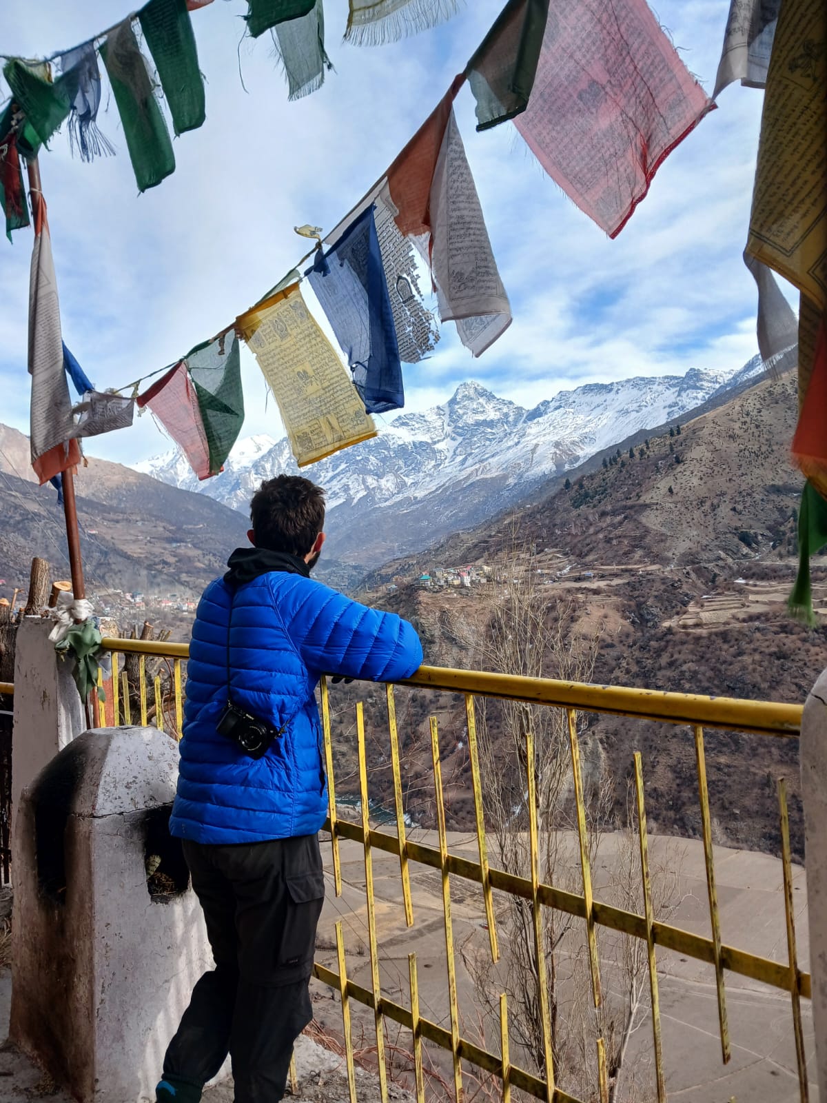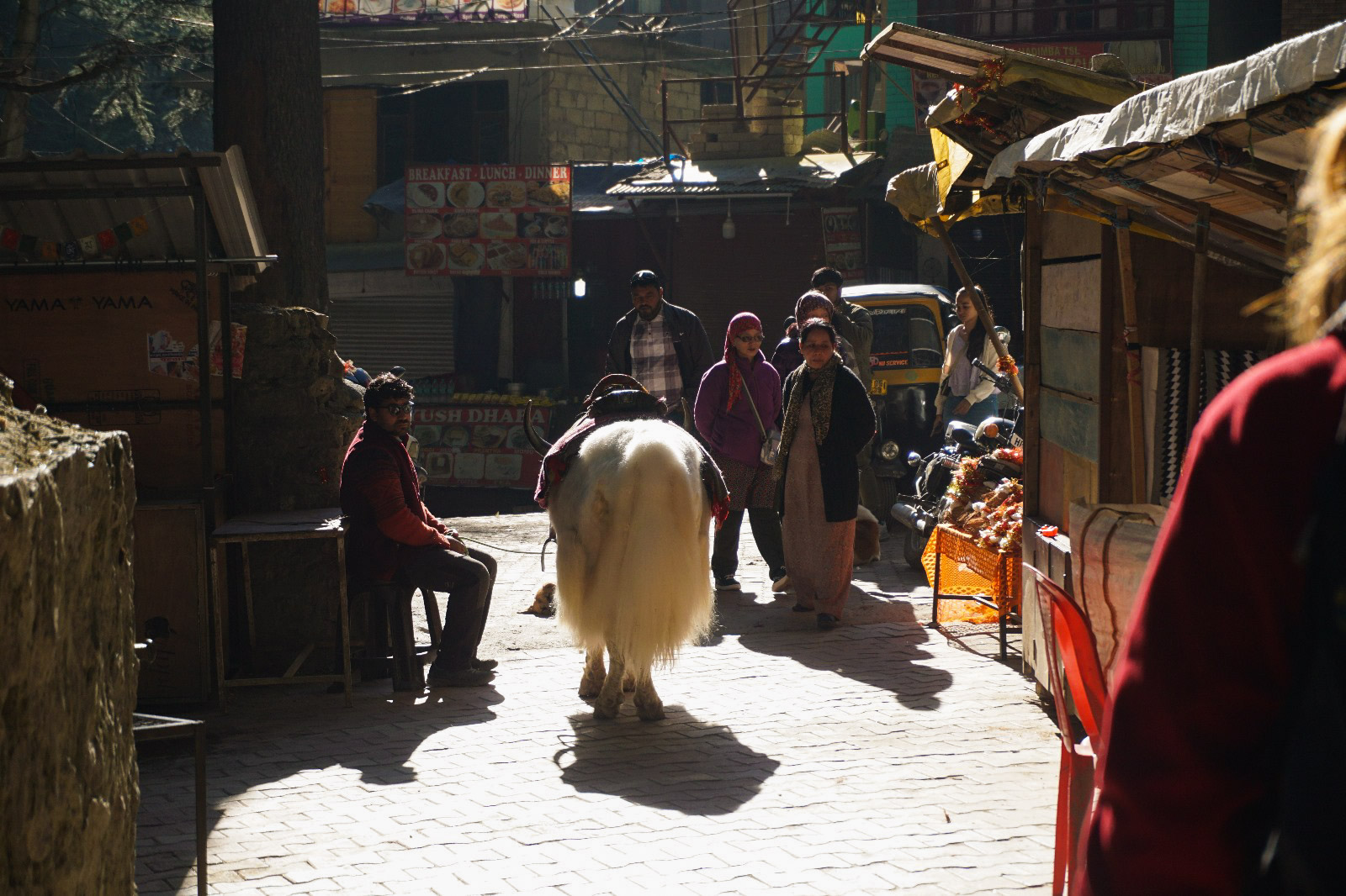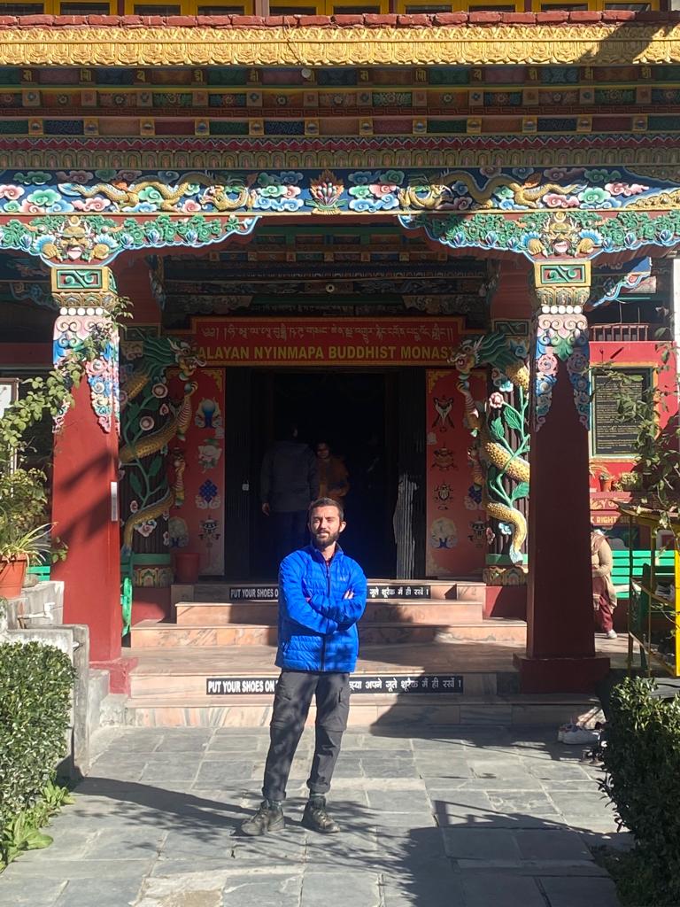 On arrive, on voit le soleil qui se lève sur les montagnes. La maison est mignonne, mais il va falloir s’installer, car on est là pour au moins deux mois. On ne se pose même pas malgré la fatigue, nous partons directement en courses. On commence à découvrir le petit village, on voit des yacks, mais on n’est pas encore sûr de ce qu’on en pense, en revanche, ils sont imposants et on est quand même impressionné. On passe devant Hadimba Temple, clairement notre repère dans le village.