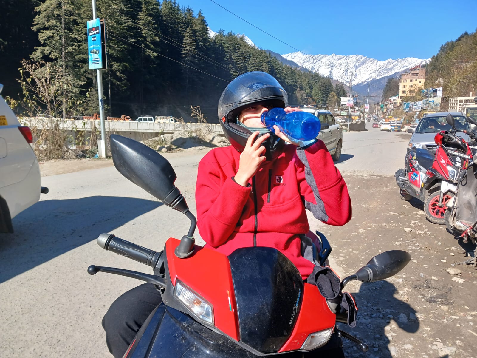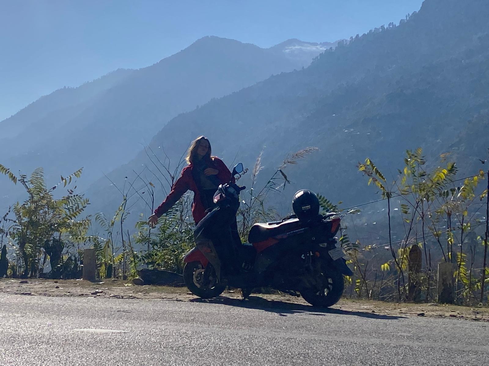 La première sortie, nous avons été tellement heureux de rouler qu’on a fait que ça de la journée. On roulait avec le vent, la vue sur les montagnes, on a exploré depuis la route jusque assez loin de la maison. On s’est fait stopper par un barrage policier qui barrait la route pour présence de verglas. On a dû redescendre et on s’est arrêté dans un petit restaurant un peu crade, mais on a super bien mangé. À chaque fois, je repense à ce que tonton Cédric nous a dit “s’il y a du monde et surtout des locaux dedans, allez y les yeux fermés”. On suit cette règle depuis le début et ça fonctionne vraiment. On a mangé des super fried rice et des aloo paratha de folie (des petites crêpes huiles et fourré de pomme de terre, un régal).