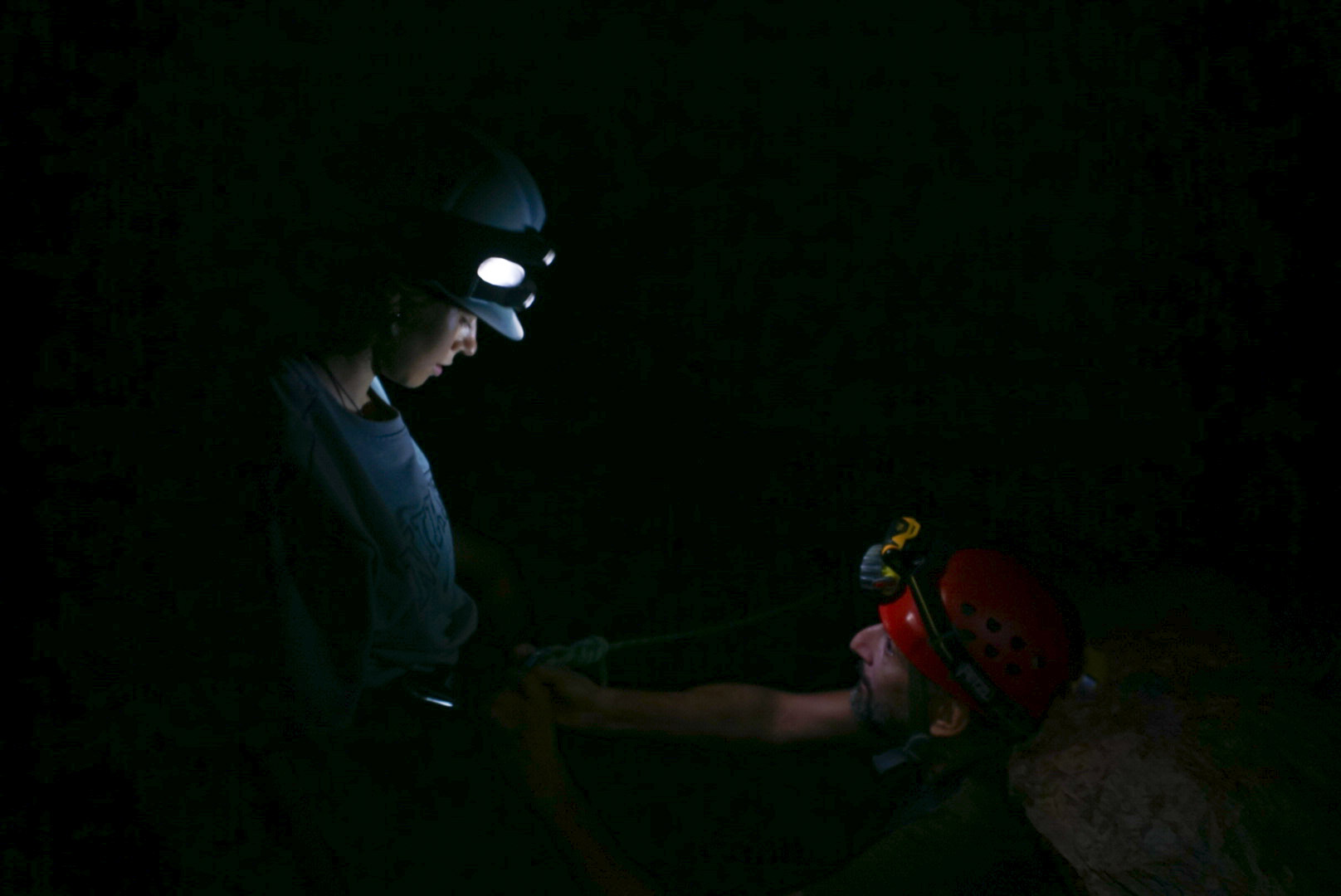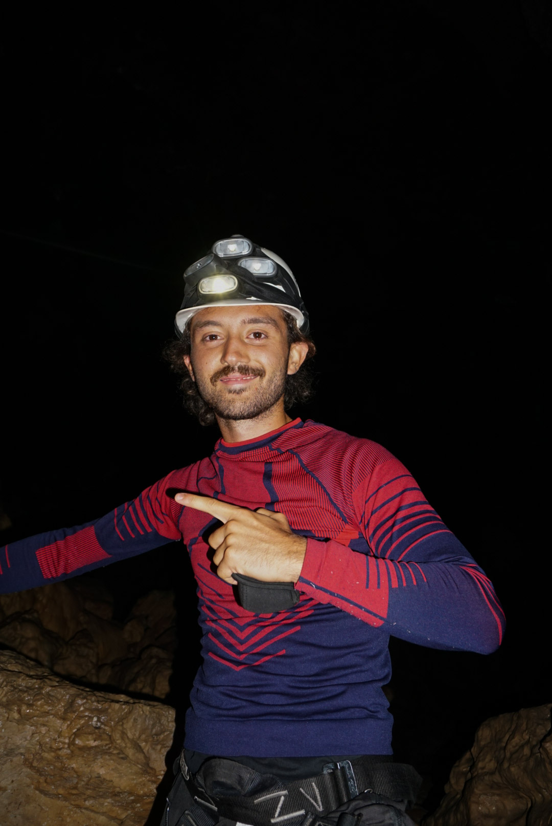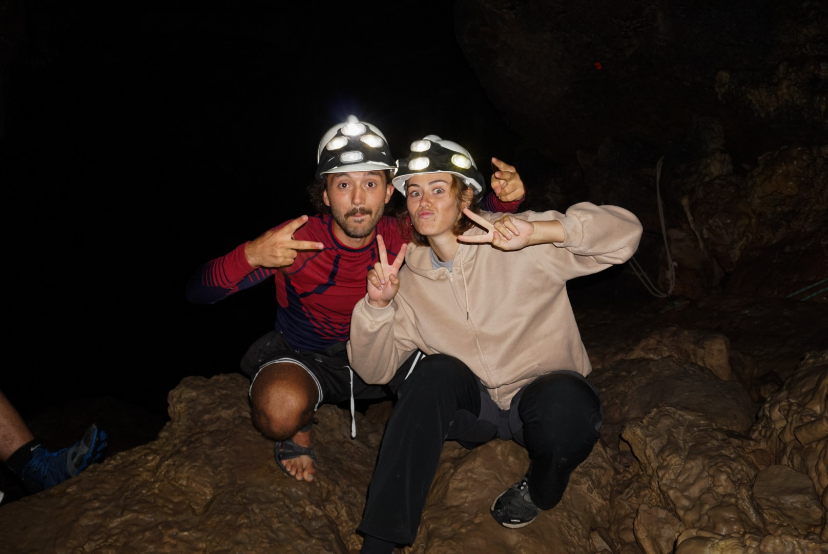 On se lance donc avec les harnais, munis chacun de 4 lampes frontales sur les casques, mais surtout accompagné et heureusement de notre guide Michel. On entre dans la grotte, le froid tombe d’un coup, l’humidité se fait sentir, on entend les gouttelettes résonner dans la grotte et le sol qui glisse. On commence l’expédition, je suis tout devant et Ax “assure mes arrières”. Le guide, nous explique le temps nécessaire pour la formation des stalactites et stalagmites, comment repérer les nids de chauves-souris qu’on ne verra pas aujourd’hui de par la présence d’autres groupes passés plus tôt dans la journée ou encore les différents chemins sur 3 niveaux de difficultés. Nous sommes dans le niveau médium. À un moment de l’exploration, Michel nous a demandé de couper les lampes pour profiter pleinement de la symphonie de la grotte. Ça ne paye pas de mine dis de cette manière, mais croyez moi, c’est magique. C’est majoritairement le son des gouttes qui tombe sur la roche, mais l’écho produit est vraiment beau. On a fait l’expérience deux fois à la suite de ma demande. Ce qui était moins bien, c’est que les gens derrière moi (sauf Ax) parlaient et riaient en continu alors que je ne voulais que profiter du son de la grotte ainsi que des explications hyper intéressantes du guide. Nous sommes arrivés au point de rappel pour grimper et j’ai juste dit “mdr je vous attends ici”, finalement, je suis montée.