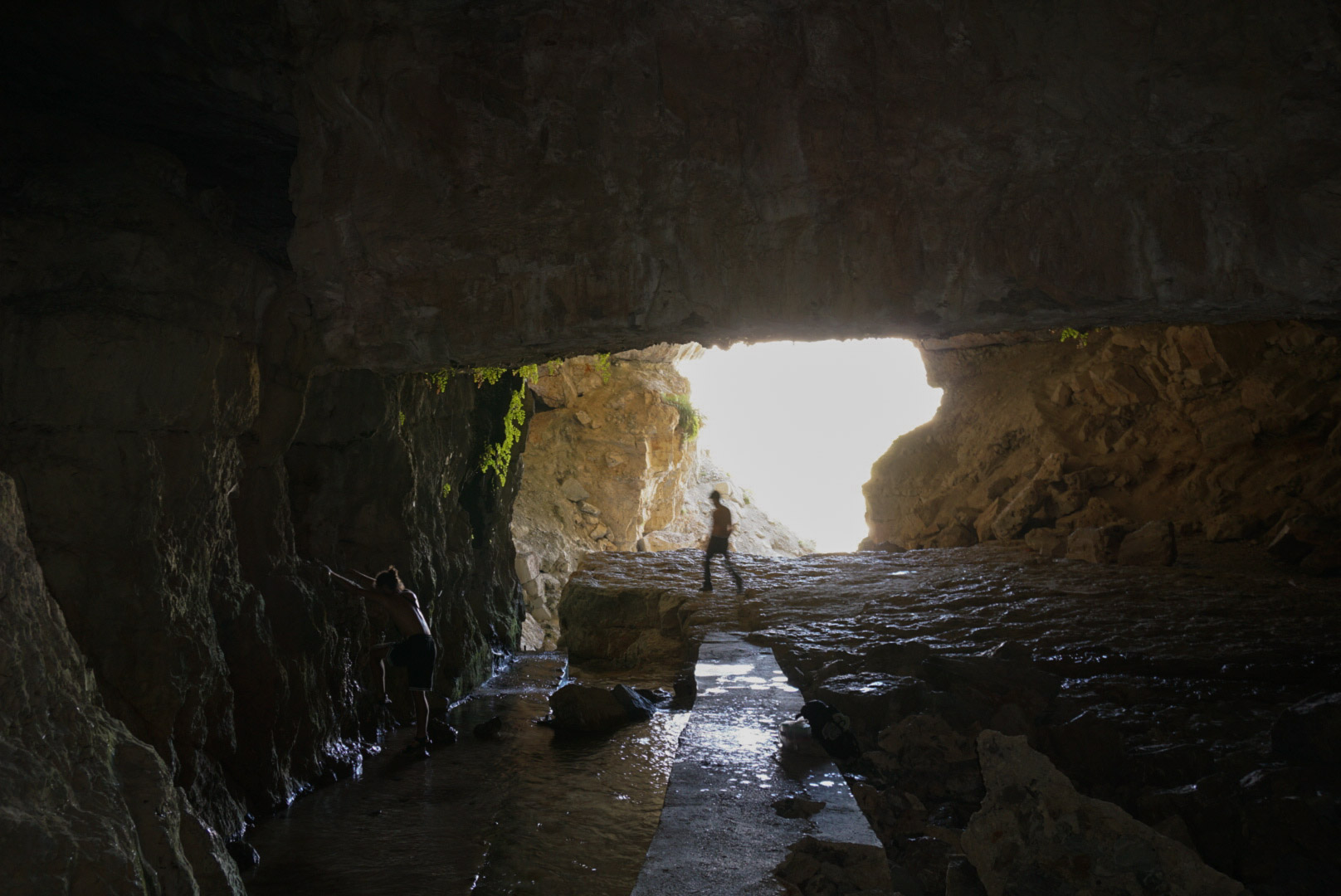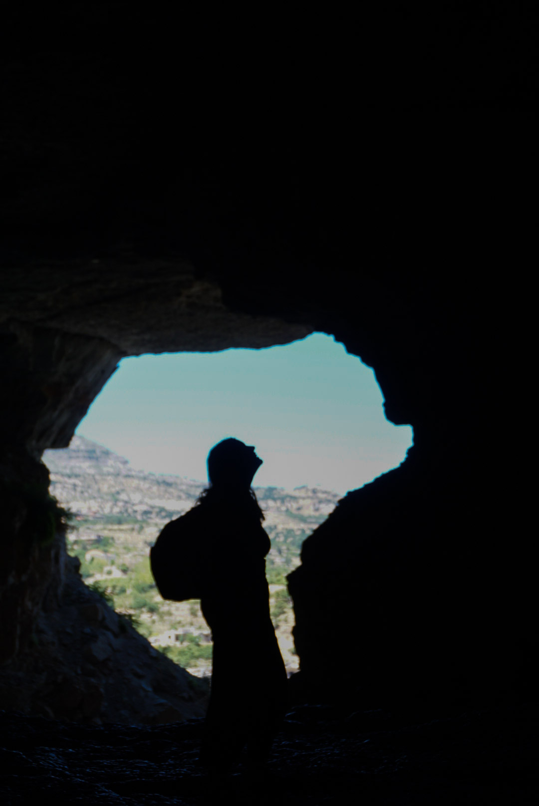 On arrive devant une petite église et à côté un petit sentier qui grimpe sur l’équivalent de 5 min nous mène à un joli point de vue pour débuter la journée, on poursuit avec une sorte d’église (il y en a beaucoup au Liban et ce sont de beaux endroits, car c’est le seul argent que le pays dépense) mais surtout, car la balade parmi les falaises est vraiment sympathique à faire. On descend le long d’un immense escalier de métal pour retrouver le niveau normal de la terre et on arrive devant la grotte. Si vous vous demandez pourquoi j’annonce ça si calmement, c’est parce qu’on nous en avait parlé préalablement. Nous ne sommes pas à 4, mais avec la petite sœur de Rawad et cousine d’Ax, Rima et son copain Georgio. Ce fameux copain connaît quelqu’un qui est spéléologue de profession et qui nous amène à un bon prix visité cette grotte. Mon taux de peur était très bas au début, j’aime bien les grottes, je ne suis pas claustrophobe et j’avais un pull donc tout se présageait bien. Ensuite, j’ai appris qu’il n’y avait aucune lumière dans la grotte, mais qu’on avait des lampes frontales donc ça allait. Ensuite, j’ai appris et non sans flipper que l’on allait faire du rappel et je crois que nul besoin de le préciser, mais on ne sait jamais : j’ai énormément le vertige dans la vie. Autant dire que j’ai dit “pas de soucis” tout en tremblant mentalement.