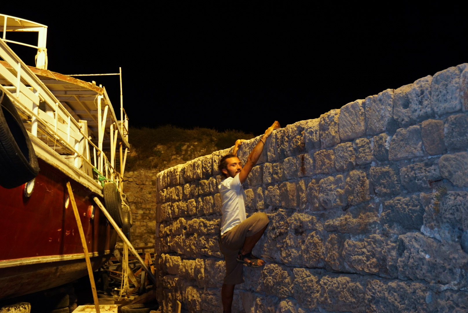 L’après-midi, nous repartons faire un camp à Chekka qui devait être une superbe étape. Cependant, quand nous arrivons après pas mal de route et énormément de nourriture dans le coffre, nous apercevons que la plage est pleine de détritus, les gens assez bizarres et l’ambiance plutôt désagréable. Ça ne nous empêchera fort heureusement pas de profiter autour du feu même si on a failli se faire brûler par une branche qui a sauté du feu dans notre direction. On se baigne au petit matin avec Rawad et après les deux autres les rejoignent tandis que je pars me sécher. Avant de remonter à la montagne, on part au bord de l’eau, goûte une limonade et mange des sandwichs un peu étranges. Honnêtement, il fait super chaud et on a la flemme, mais on se dit que comme le bar l’autre jour, on va transformer ça. On arrive au bord du port, on mange tous les 4 et après ça, Ax décide de sauter du muret où on était installé. Ce n’est que 2 m au-dessus de l’eau, mais il s’élance pour nager dans l’eau du port. Je décide de le rejoindre et on enchaîne trois ou quatre sauts main dans la main tout en remontant comme on peut sans échelle. On nage jusqu’à l’autre côté du port pour visiter un phare que je n’arrive pas à gravir avec mes pieds mouillés et mon vertige et on repart plus heureux qu’avant la baignade sans trop se préoccuper de ce qu’il se passe autour de nous.