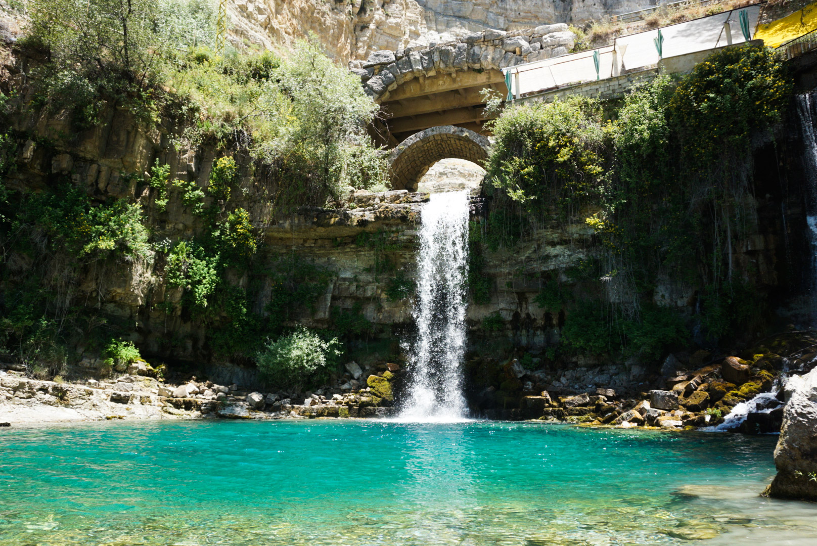 Et hop le répit fini, Rawad et Dana passe nous récupérer à Kfarakab et nous partons en direction d’une réserve naturelle avec des sentiers de randonnée qui débouchent sur de jolis lacs aux couleurs claires. Parfait au vu de la chaleur ambiante ! Mais avant toute chose, nous dégustons des sages aux œufs et au fromage en bord de terrasse avec pleins de petits chatons et des jus d’ananas. Une fois lâchés par les petits monstres qui voulaient dévorer notre repas et qui pour cela, n’hésitent pas à se transformer en créatures déterminées en grimpant sur nous, la nappe et les affaires, car tous les moyens sont bons pour atteindre les sages.