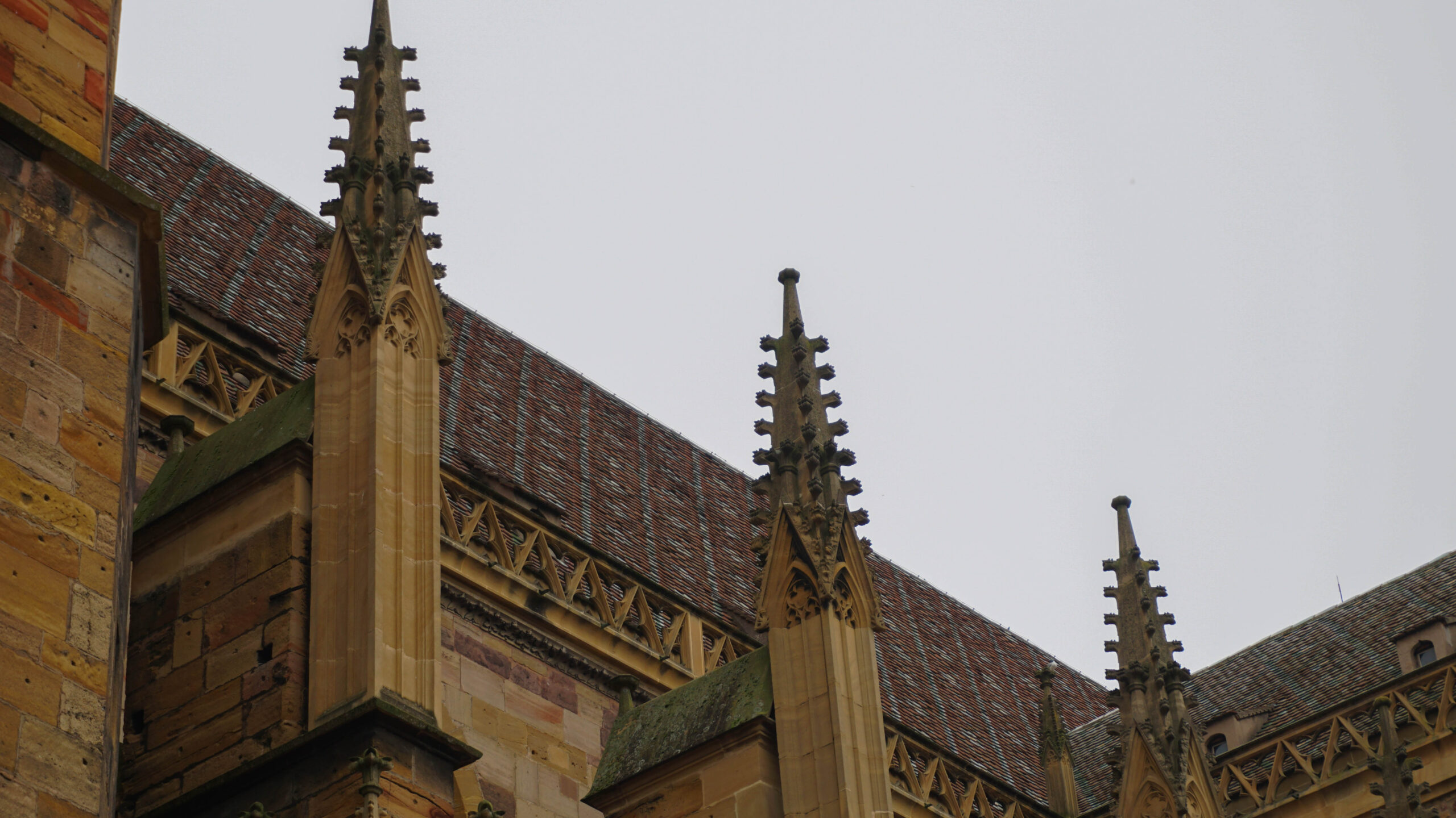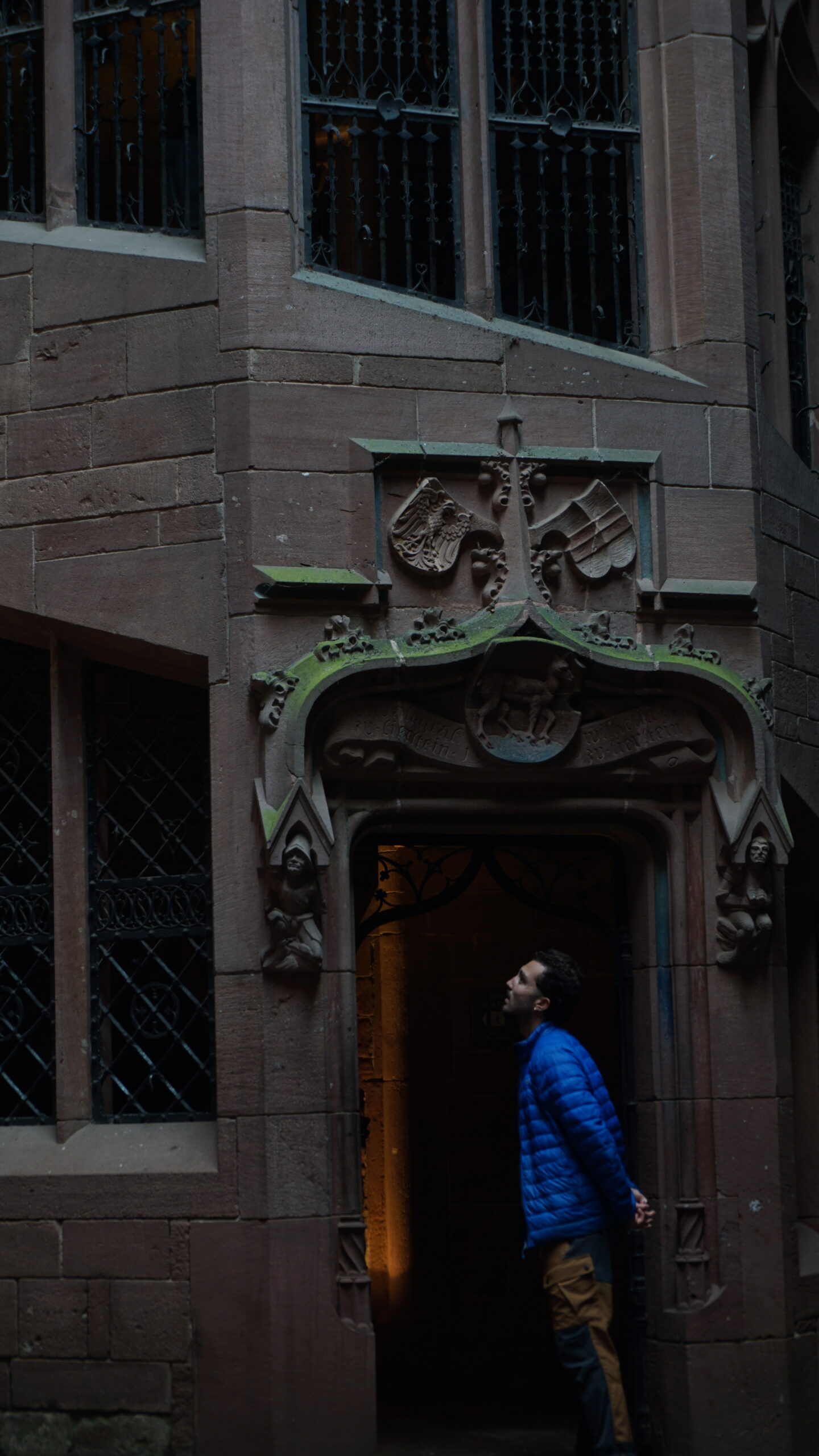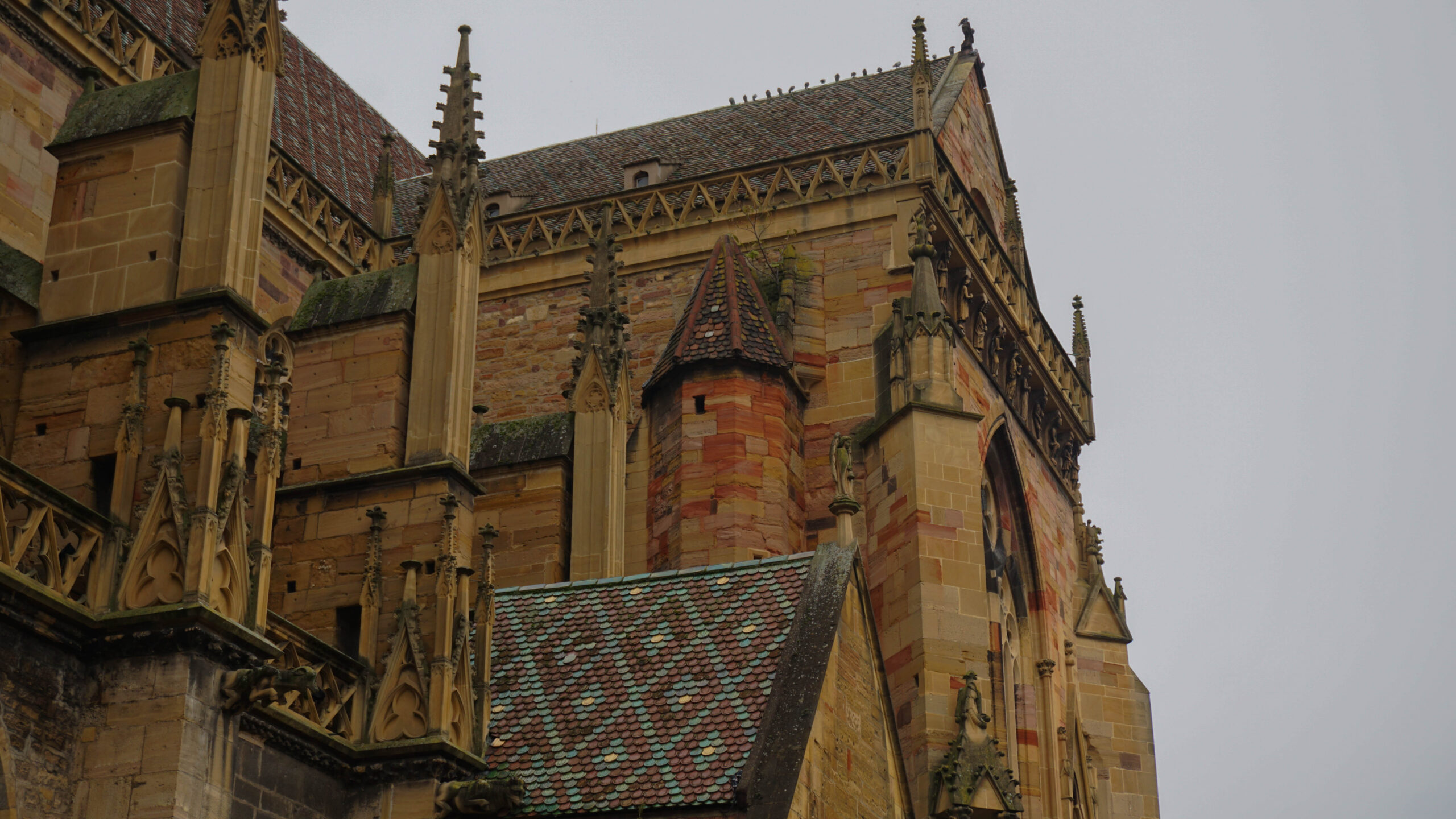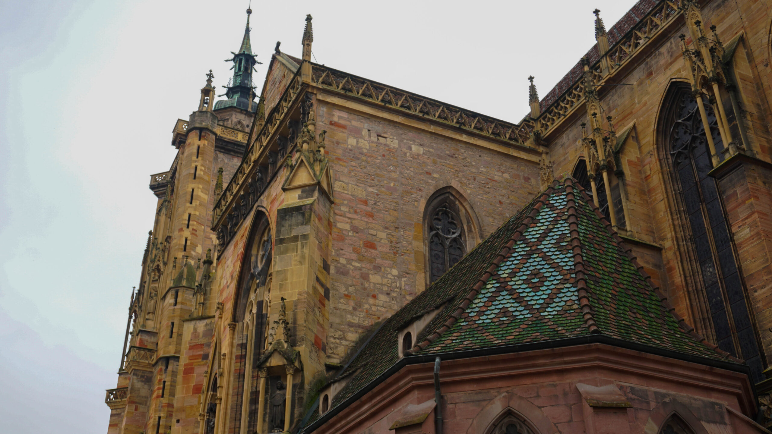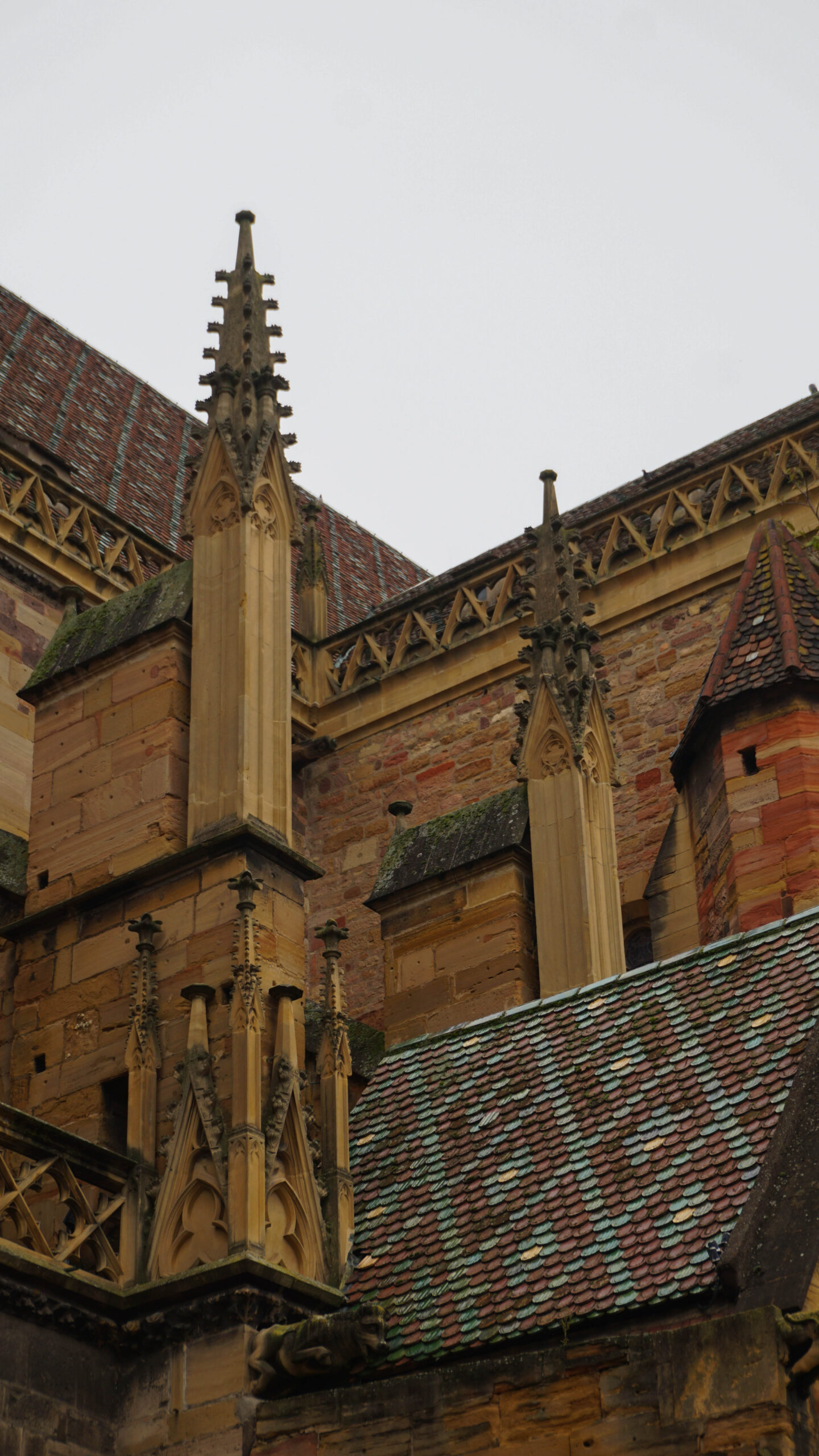 On se balade et on prend plaisir à admirer nos premières maisons à colombages, les églises en pierre rosées trop jolies et les fresques partout. L’église est magnifique, elle ressemble à une église où de nombreux secrets seraient gardés. Elle est fermée mais on a passé déjà un bon moment à regarder les détails de la porte forgée et des sculptures. On poursuit notre balade dans les rues désertes et on se questionne sur pas mal d’éléments qui semblent mystiques dans la ville.