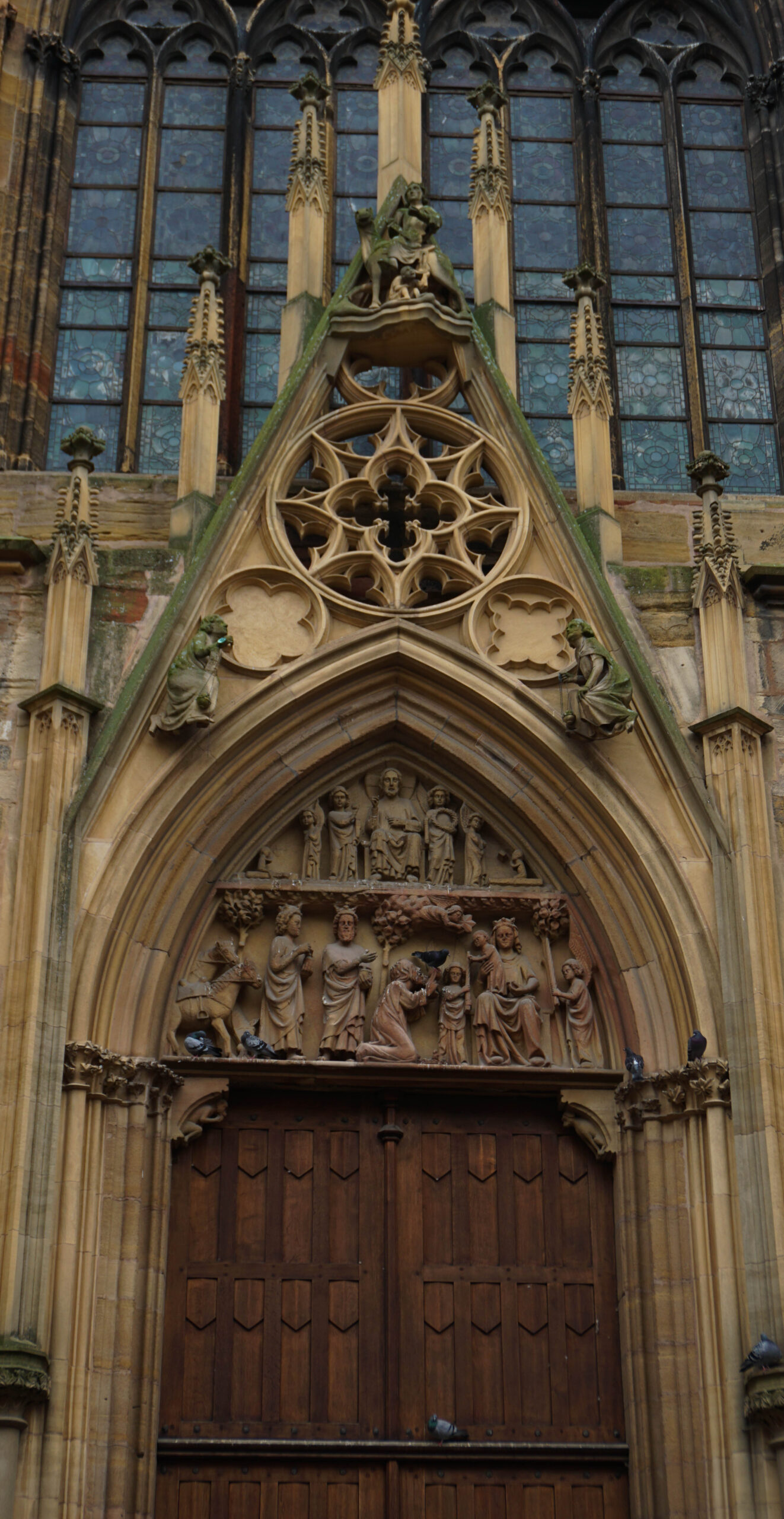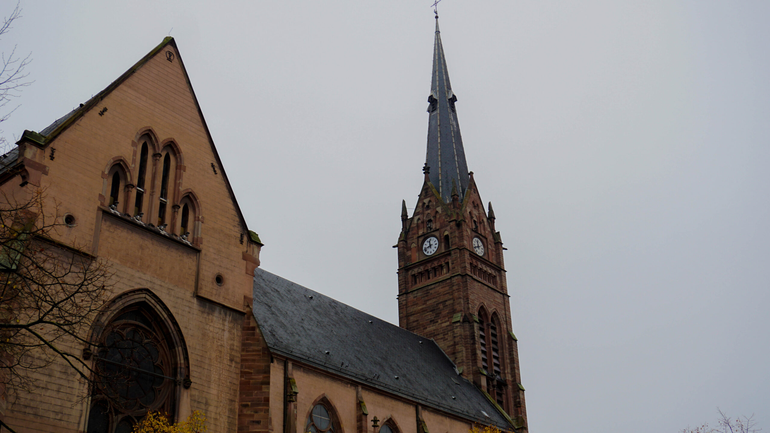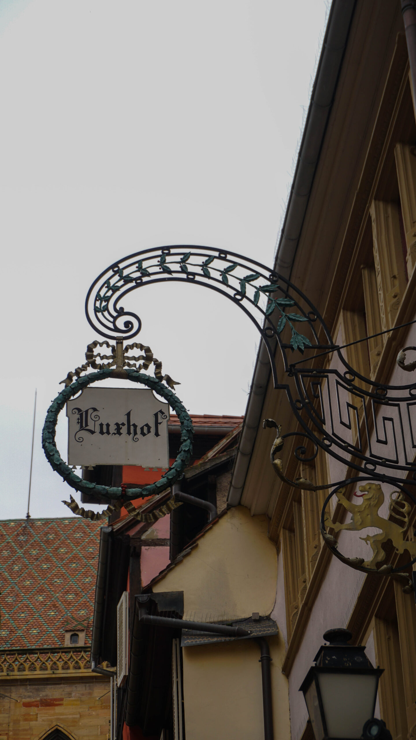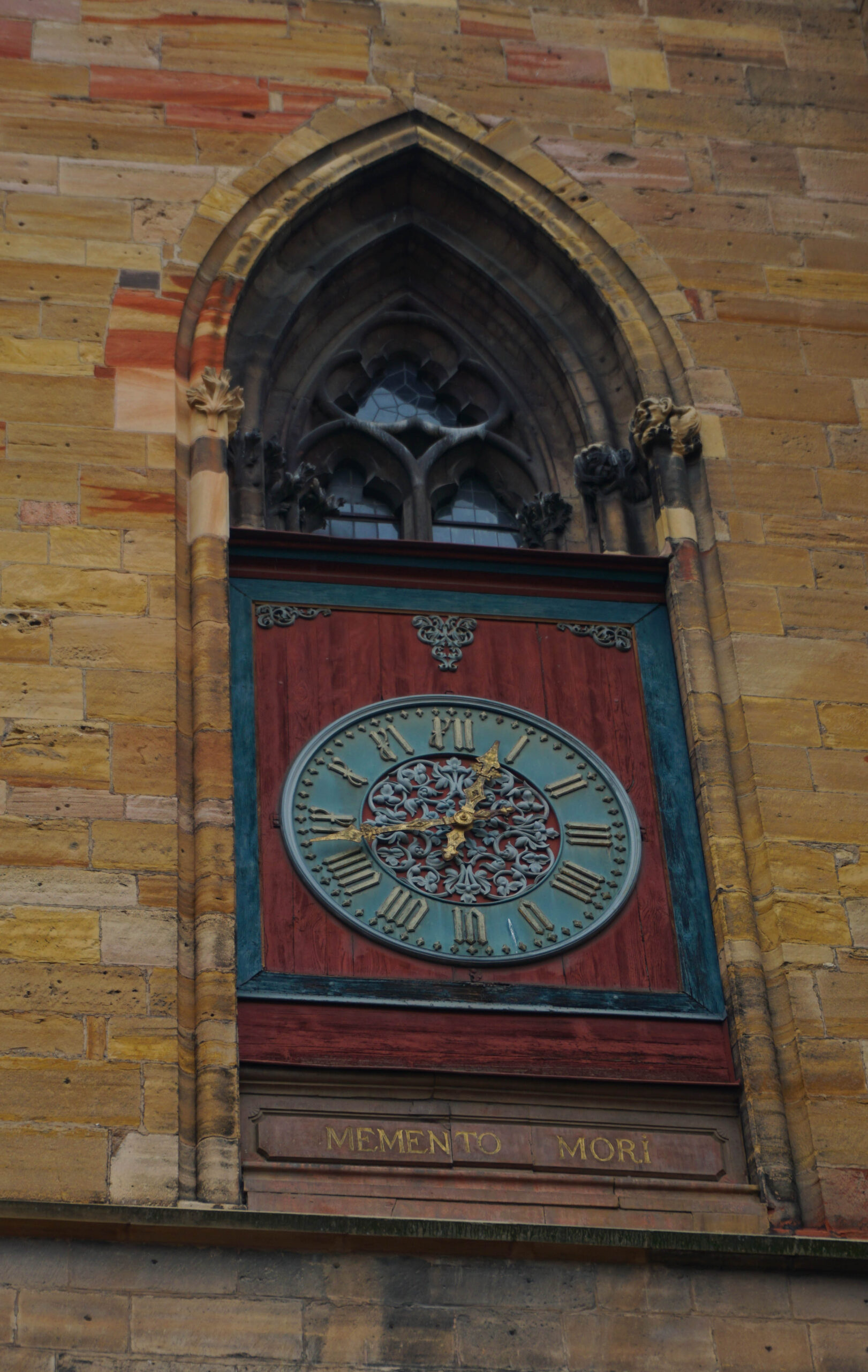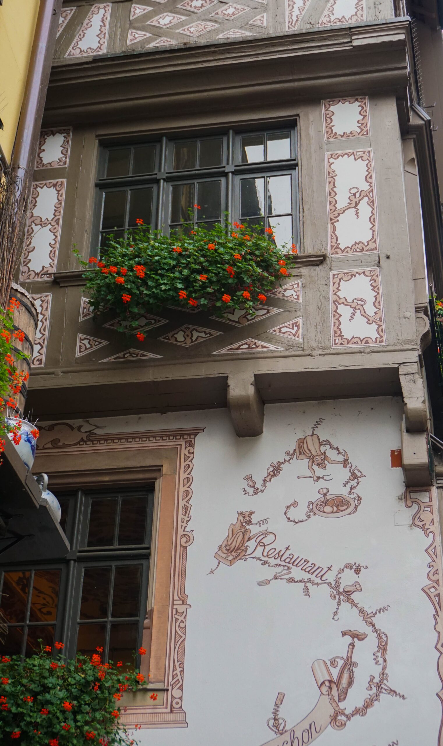 On se balade et on prend plaisir à admirer nos premières maisons à colombages, les églises en pierre rosées trop jolies et les fresques partout. L’église est magnifique, elle ressemble à une église où de nombreux secrets seraient gardés. Elle est fermée mais on a passé déjà un bon moment à regarder les détails de la porte forgée et des sculptures. On poursuit notre balade dans les rues désertes et on se questionne sur pas mal d’éléments qui semblent mystiques dans la ville.