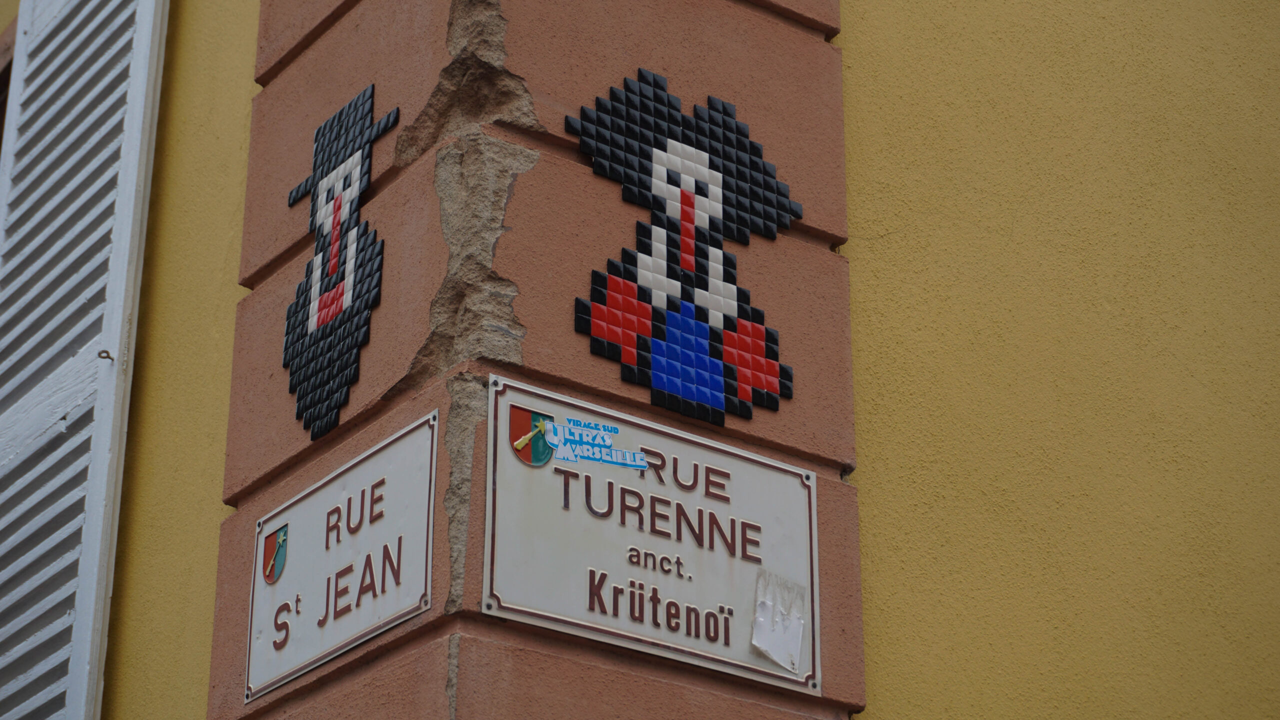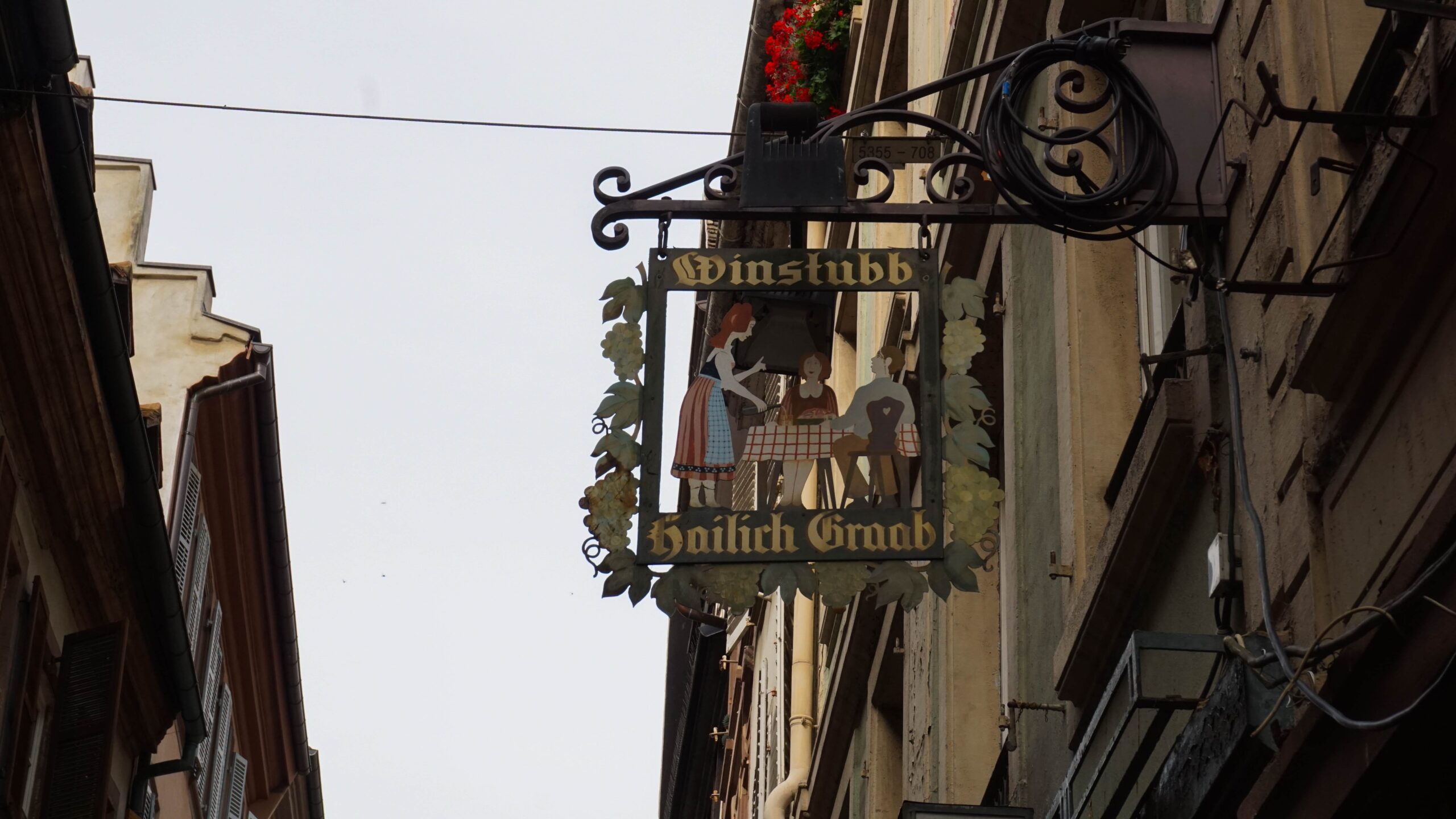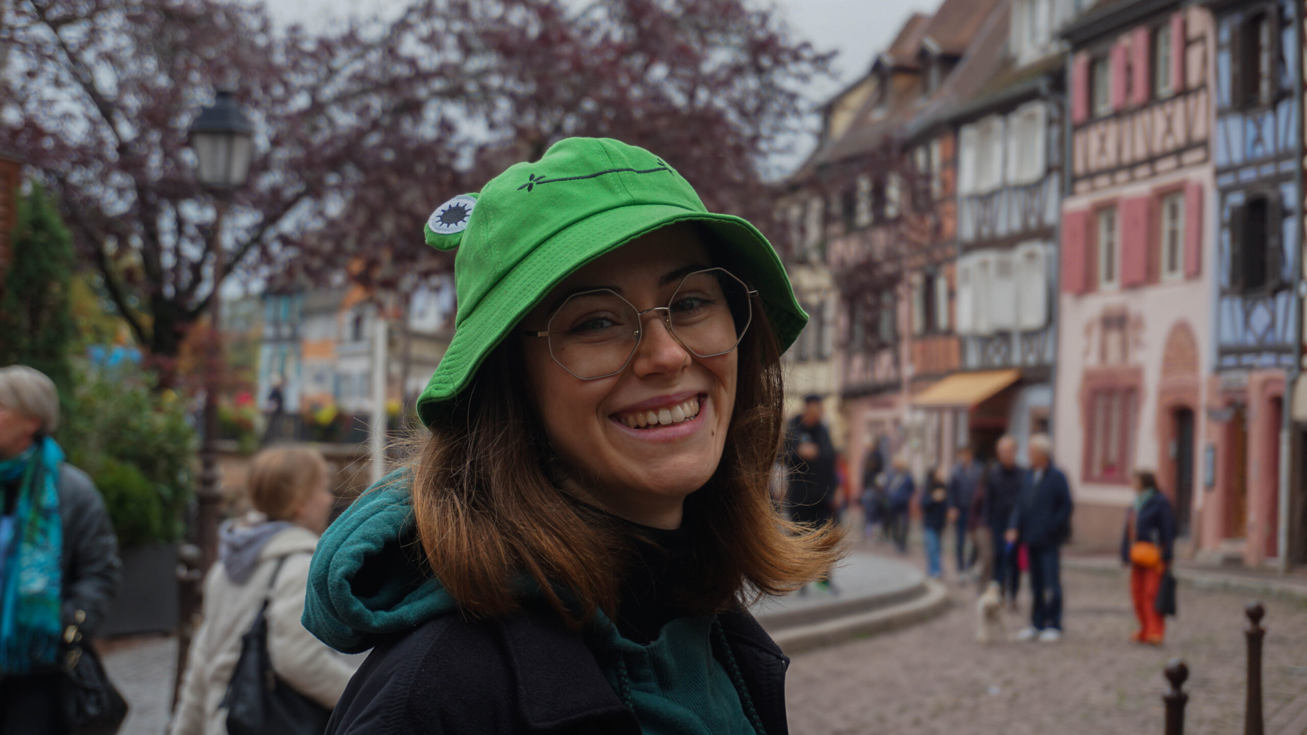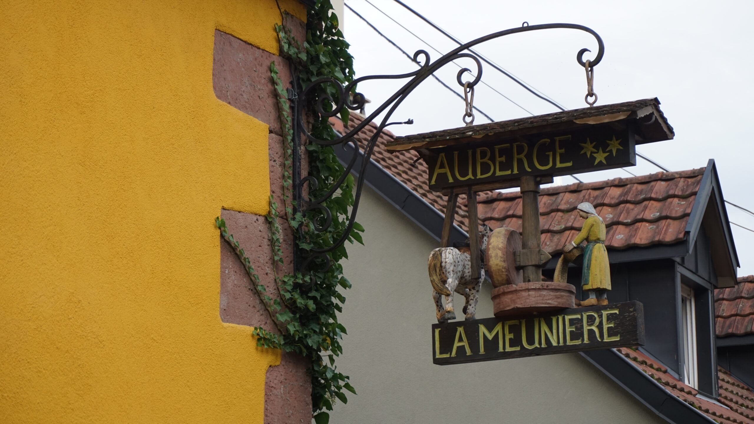 Ce matin, c’est notre premier jour de visite et nous partons en direction de Colmar, la ville que nous voulions le plus faire. Et on avait un bon pressentiment, car la ville est absolument magnifique. Les toitures vert et rouge, les motifs que créent les tuiles et leur brillance, ça nous captive tout de suite. L’architecture est magnifique, pleine de détails, tout est à colombages, des petites enseignes en fer forgé décorent les magasins et organisent la ville, tout est beau. J’ai été de les collectionner en photos tellement j’ai adoré ses petites enseignes accrochées partout.