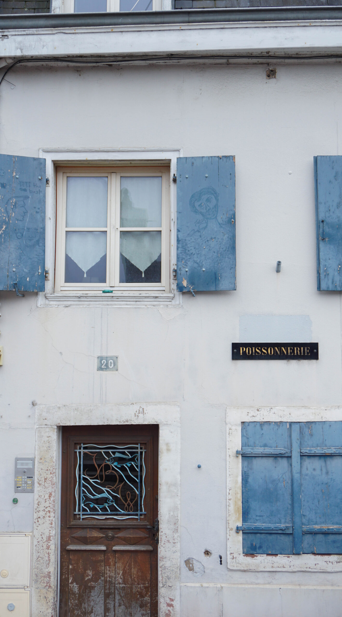 On découvre des petits magasins avec des cartes, toujours autant d’enseignes d’échoppes que je photographie puis en suivant le long de la rivière, on tombe sur un marché couvert. Nous y entrons, mais il est petit, sans grand intérêt. On aura bien rigolé cependant des blagues faites par Alex sur l’étale de poissons.