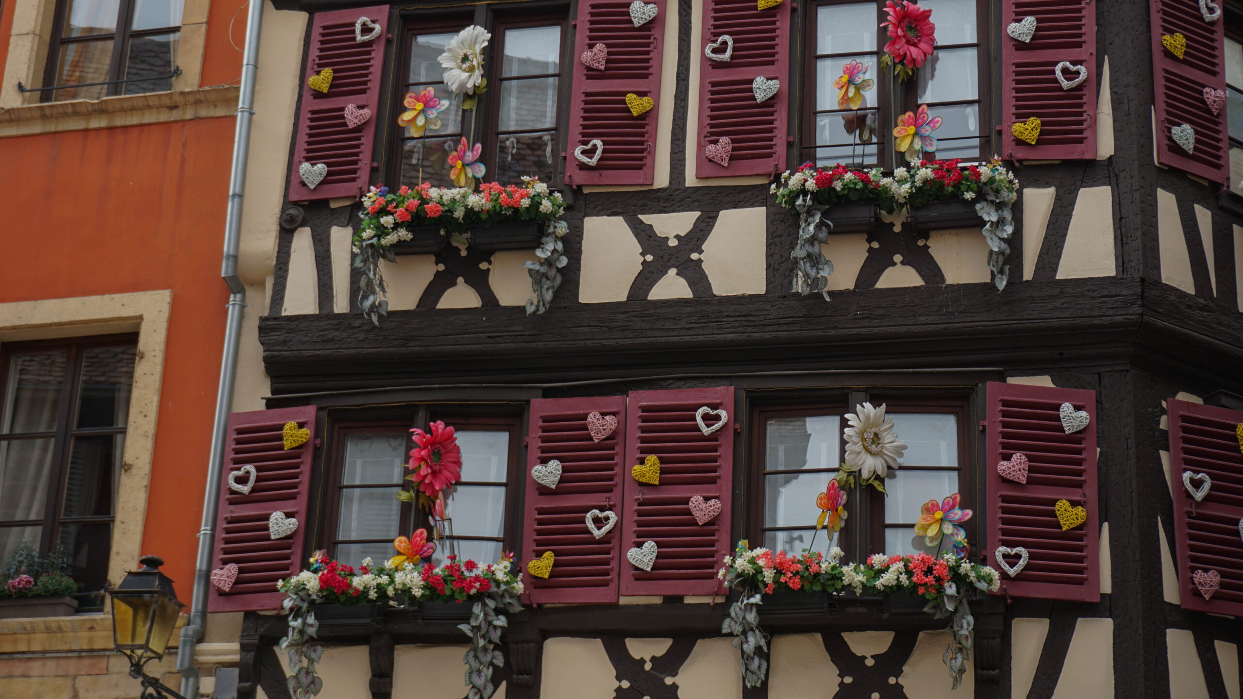 Nous repartons et je me rappelle que je voulais voir une des maisons avec énormément de cœurs qui était sublime. Un véritable attrape touriste plein de babioles alsaciennes. J’ai donc acheté un porte-clé de cigogne, car je suis super influençable et que “ça ira parfaitement avec mon sac”.