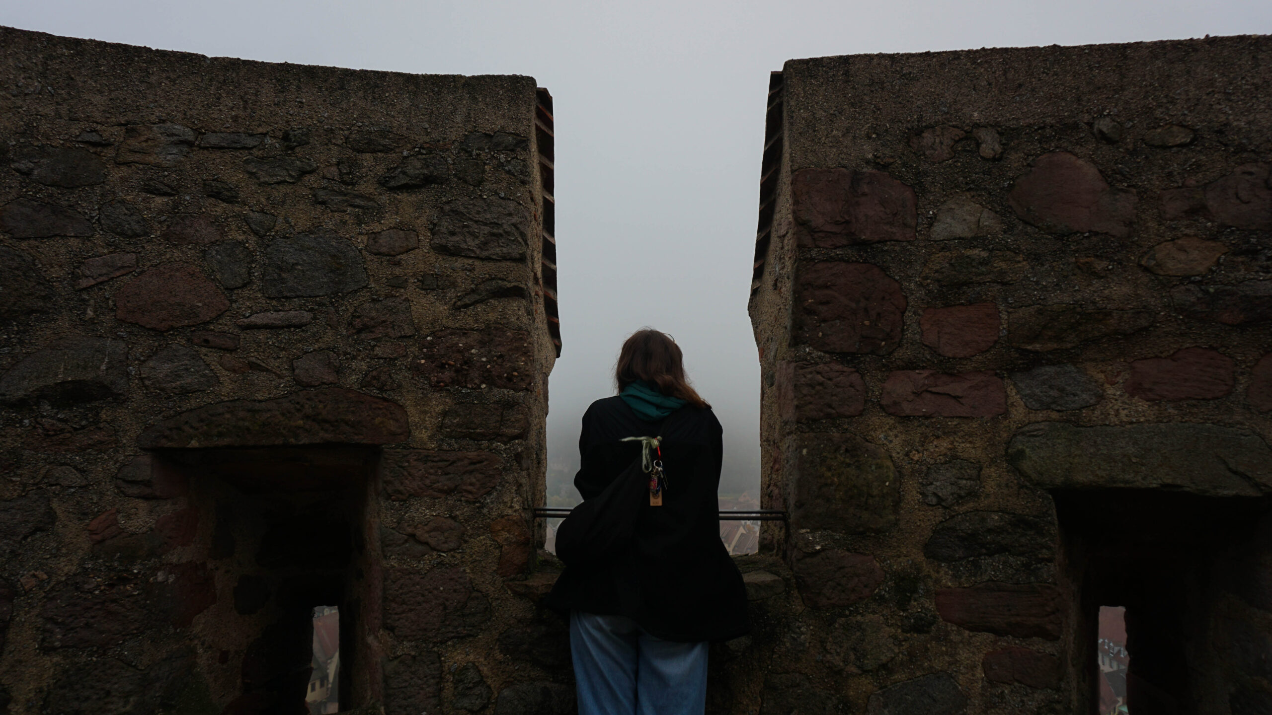 En arrivant sur le parking, on se rend compte que c’est plutôt touristique, on s’attendait à voir d’autres gens, mais étant donné la période, on pensait que ce serait presque désert. Je pense que l’été ça doit être terrible, heureusement, nous sommes en hors saison. On a une petite rando de 15 minutes entre le parking et l’entrée du château et en arrivant devant, on comprend. C’est le plus beau château que je n’ai jamais vu. On aperçoit les nuages, les pierres rouges, l’architecture qui nous fait nous sentir comme dans Harry Potter. On tombe amoureux des lieux.