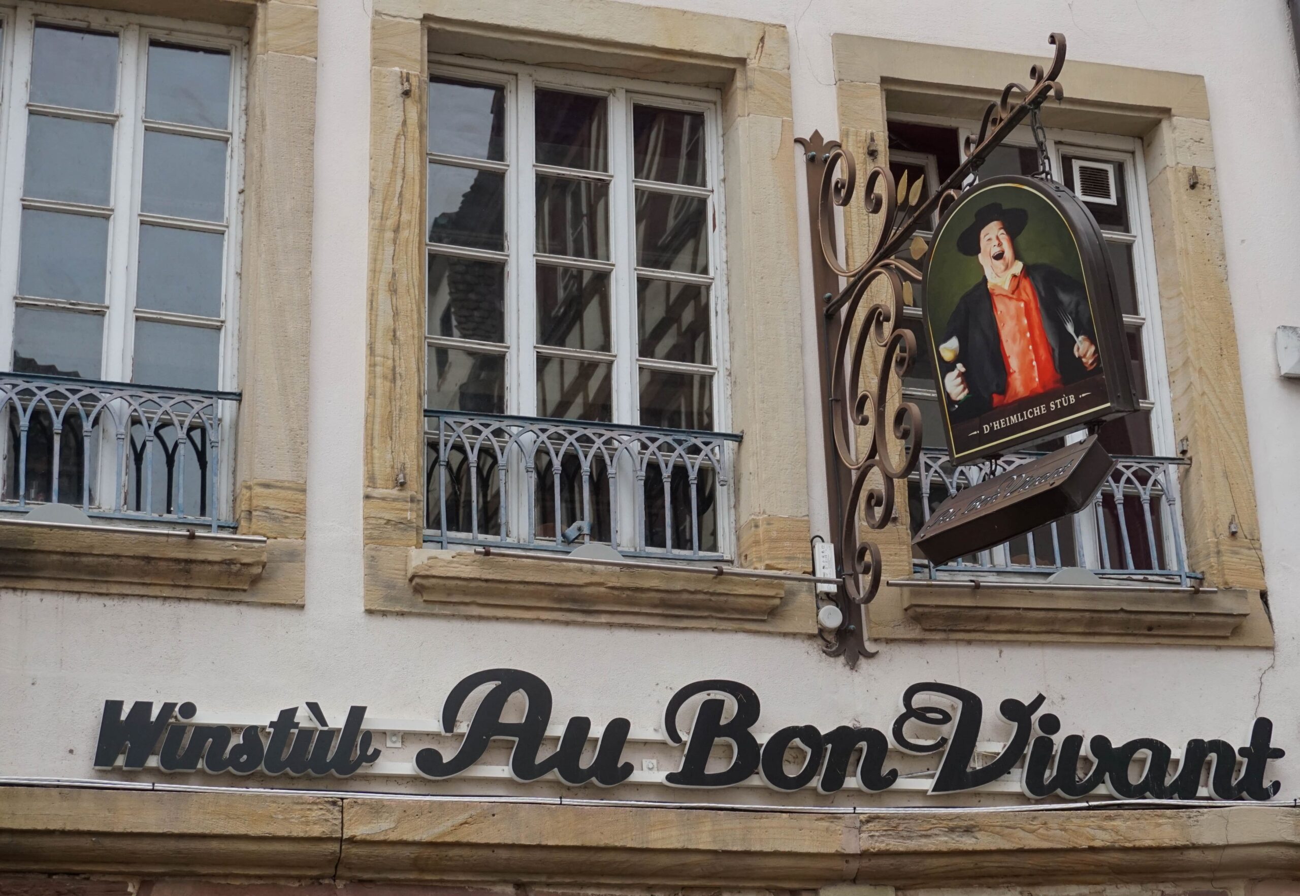 Je prends une flammekueche gratinée donc la classique avec de l’emmental gratiné au four et Alex a pris une à la tomme fumée. On se régale, on adore l’ambiance des tartes fines sur des planches en bois à manger à la main. La déco est adorable tout comme la ville, avec des petits cœurs sculptés dans les chaises en bois tout comme le sont les volets sur les façades des bâtiments.
