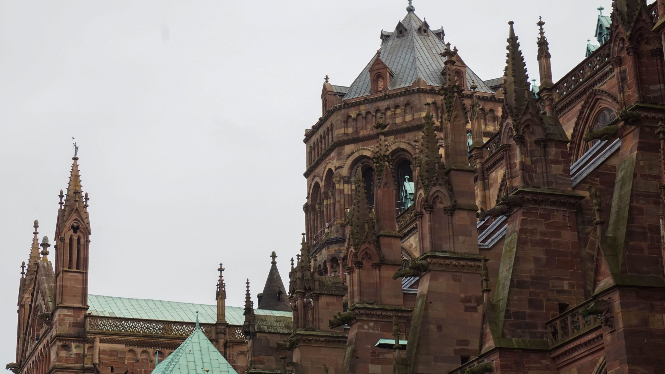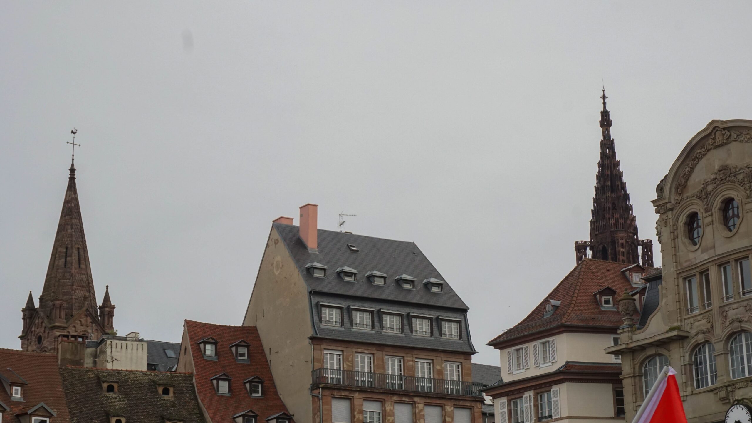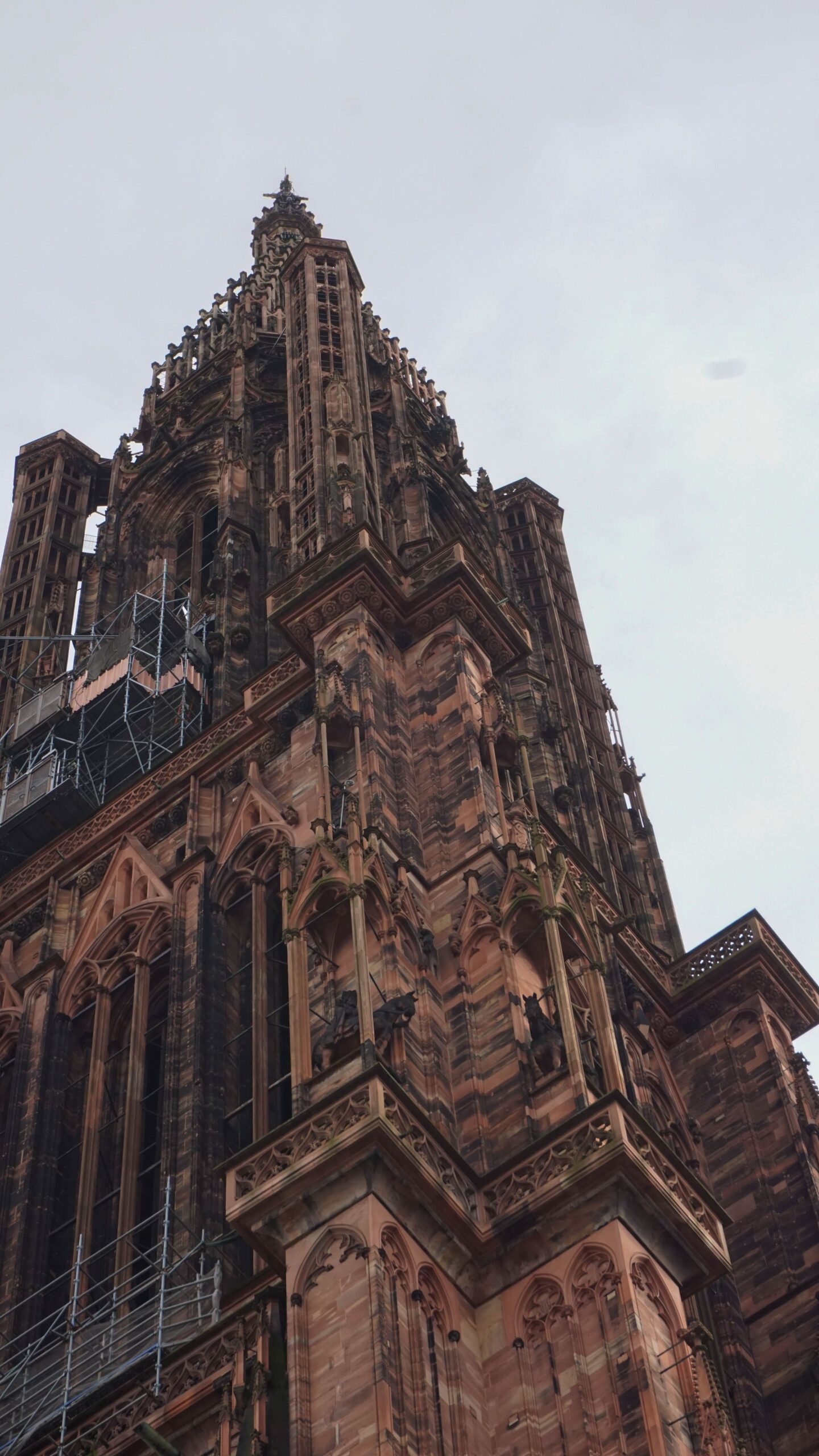 On regarde quelques stands de brocante avec des appareils photo anciens avant de se diriger (je ne m’en rends pas compte, mais il m’y guide) vers la cathédrale de Strasbourg. Je sillonne les ruelles en prenant des photos de tout ce que je trouve jolie puis l’imposante cathédrale se dresse devant moi. Elle est vraiment immense, sa couleur légèrement rosé très joli comme plein de bâtiments de la région et ses multiples sculptures rendent le tout très impressionnant. Nous ne visitons pas l’intérieur au vu de la foule qui attend pour y rentrer et du prix des tickets, mais je reste 15 bonnes minutes à en faire le tour pour la voir sous tous les angles.